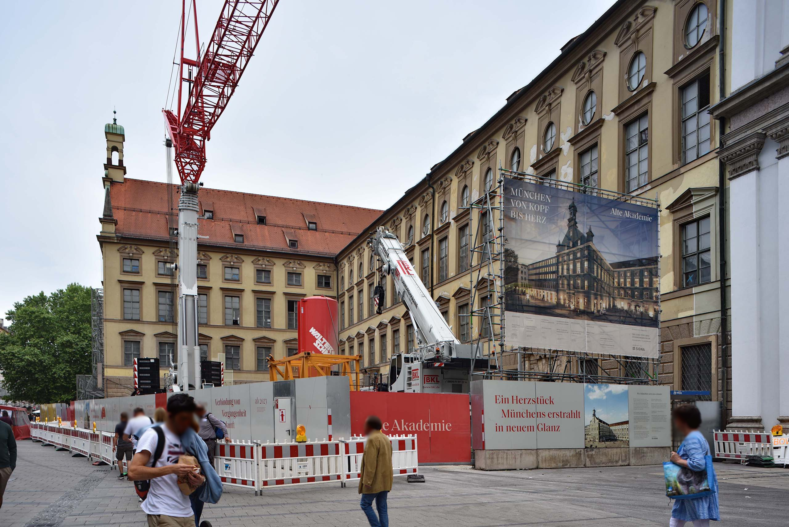 Zur Historie. Letztlich war die Alte Akademie ein Produkt der Auseinandersetzung der Katholischen Kirche mit dem Protestantismus. 1585 wurden die Arbeiten begonnen für das Jesuitenkolleg (Wilhelminum), heute Alte Akademie. 34 Bürgerhäuser mussten für den Komplex abgebrochen werden. Zwischen der Ett-, Maxburg- und Kapellenstraße und der Neuhauser Straße wurden die St. Michaelskirche, das Augustinerkloster und das Jesuitenkolleg errichtet. „Die Aufhebung des Jesuitenordens erfolgte im Jahr 1773 durch Papst Clemens XIV. auf Druck der Könige von Frankreich, Spanien und Portugal.“ (Wikipedia). Danach wurden diverse königliche und staatliche Institutionen untergebracht. 1944 wurde bei einem Bombenangriff der Alliierten die Alte Akademie bis auf Fassaden-Fragmente zerstört. Der Architekt Josef Wiedemann leitete in den fünfziger Jahren den Wiederaufbau. Bis 2012 war das Bayerische Statistische Landesamt hier untergebracht.1