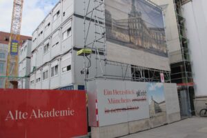 Nun liegt die Hauptnutzung der Alten Akademie auf 10.000 qm beim Einzelhandel. In oberen Etagen werden 5500 qm Büroflächen eingerichtet, etwa 300 Arbeitsplätze. Dazu gibt es 60 Wohnungen von 40 bis 140 qm und 2500 qm für Gastronomie. 2023 soll alles fertig sein.4