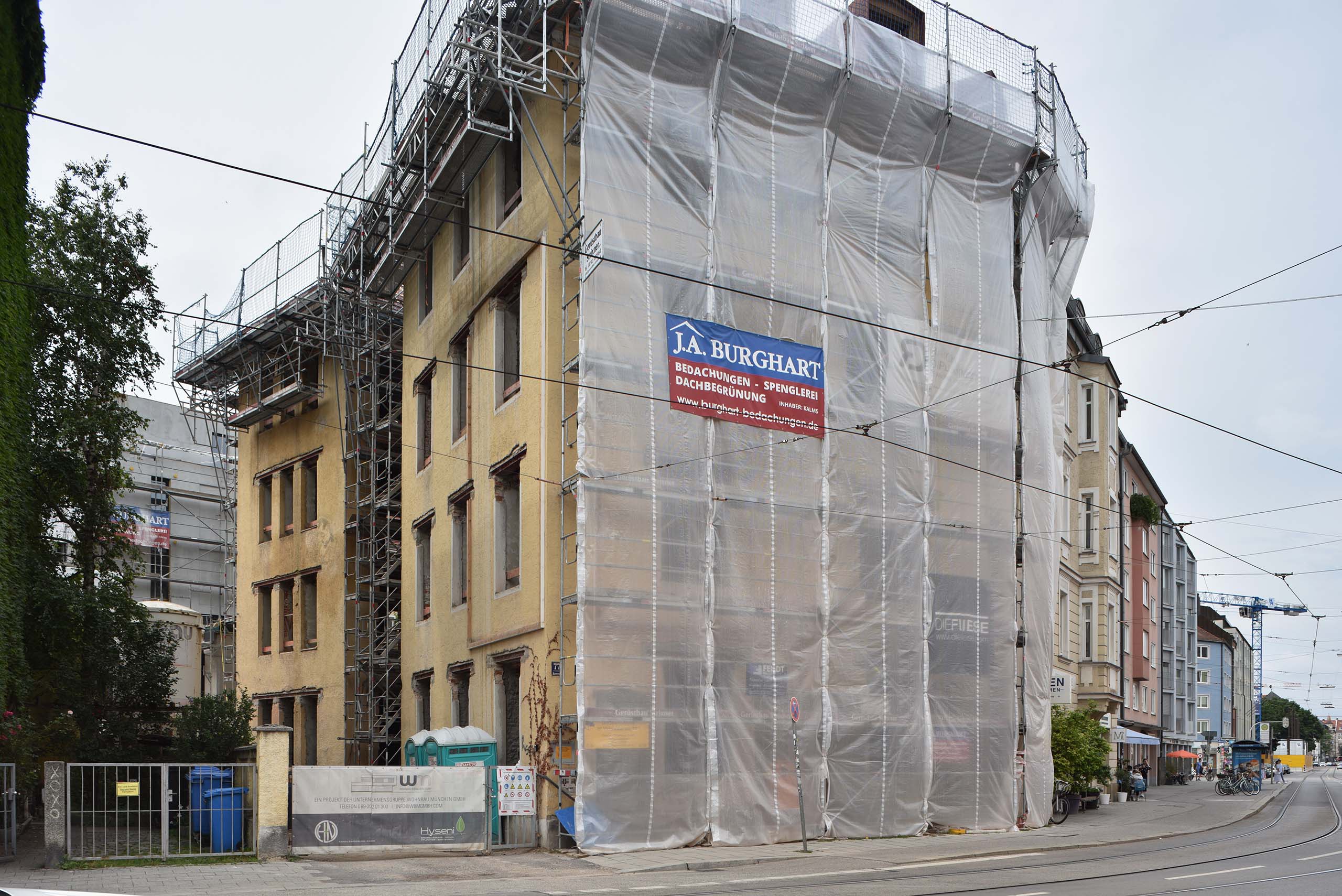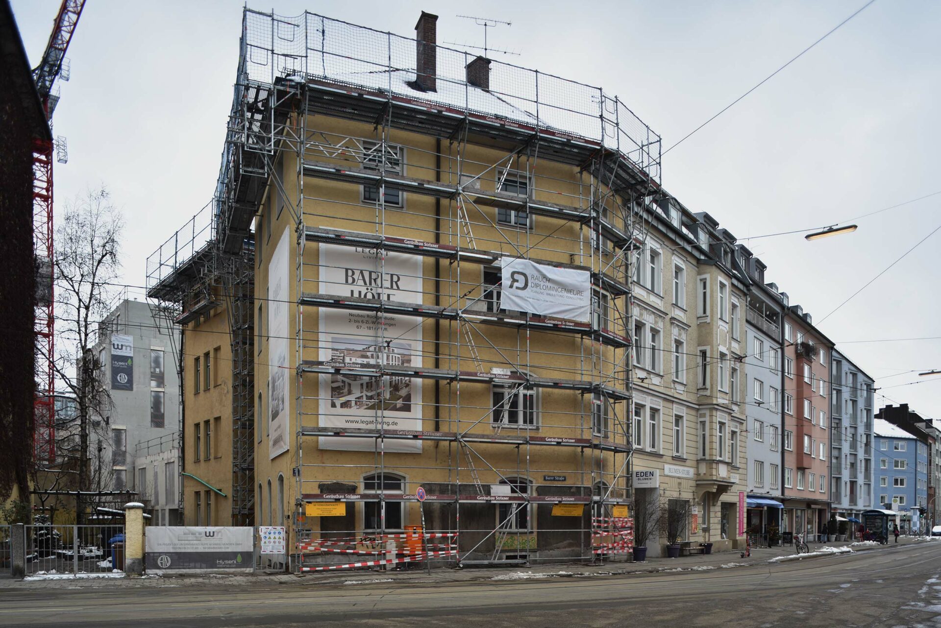 Bauherr ist hier in der Maxvorstadt Legat Living aus Unterföhring mit dem Website-Slogan: „Exklusivität als Prinzip“. Das Objekt befindet sich im Rückgebäude der Barerstraße 77. Da der Bauherr das Vorderhaus (sechs Wohnungen mit 500 qm) aufstocken und auf 750 qm erweitern will, erteilte die LBK – trotz der Erhaltungssatzung für dieses Gebiet – die Genehmigung für den Abriss des Rückgebäudes und den Neubau mit zehn Wohnungen (67 bis 181 qm), weil im Vordergebäude „entsprechender Ersatzwohnraum“ geschaffen wurde. Legat-Living-Prokurist Johannes Thoma verwies darauf, dass das Grundstück bereits 2016 erworben wurde: Die Erhaltungssatzung sei später erlassen worden. Er teilte im April 2020 mit, dass die Hälfte der Wohnungen bereits verkauft sei.1