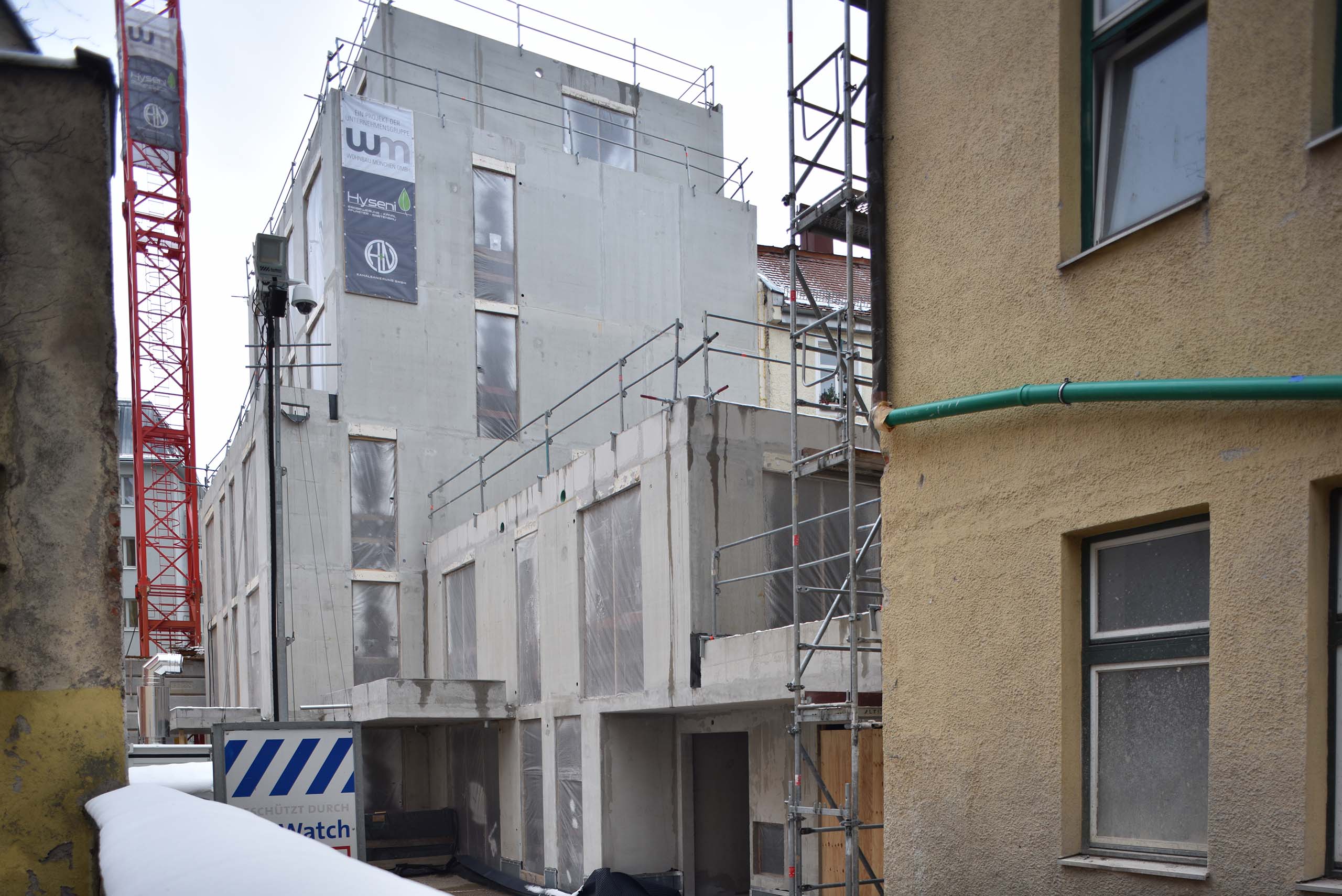 Hier sollen 10 Neubau-Wohnungen (2 bis 6 Zimmer, 67 bis 180 qm Wohnfläche) entstehen, 90 Prozent sind bereits verkauft.3