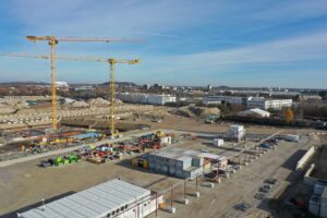 Neufreimann. Bis 2030 sollen hier Wohnungen mit 15.000 Menschen gebaut werden. Für bezahlbare Mieten sorgen Genossenschaften, Mietshaussyndikate sowie die städtischen Wohnungsbaugenossenschaften und ein privater Investor- Etwa um 2027 soll die verlängerte Trambahnlinie 23 von Schwabing-Nord nach Neufreimann fahren, dazu eine Tram von Kieferngarten durch die Heidemannstraße bis Am Hart sowie Buslinien. Dazu wird eine Grundschule entstehen (Bezug 2023) und ein Gymnasium (2024) sowie die dazugehörende soziale Infrastruktur. ((Dürr, Alfred, Eine Kleinstadt wächst heran, in SZ 2.6.2022 []