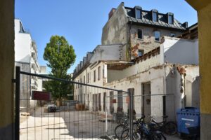 Ausgezogen. Ein Wohnungsmieter und der Verein Malort mit seinem Atelierraum sind noch im Hinterhof zurückgeblieben. Die beiden Rückgebäude werden Mitte 2019 abgerissen; hierhin kommt ein sechsstöckiges Wohnhaus. Im Vorderhaus wird das Dachgeschoss ausgebaut.3