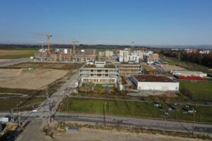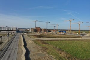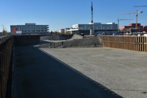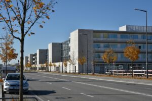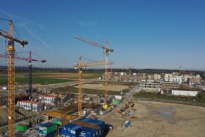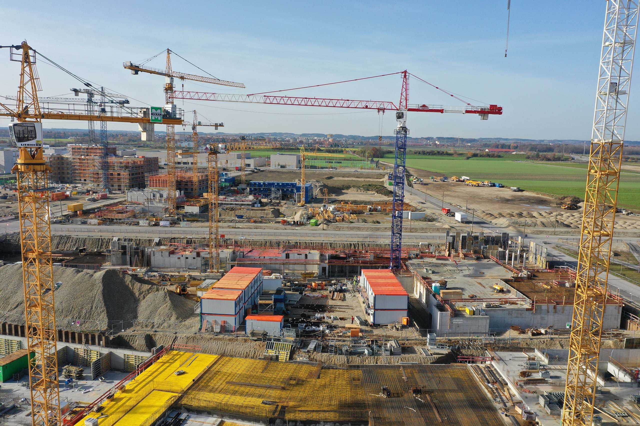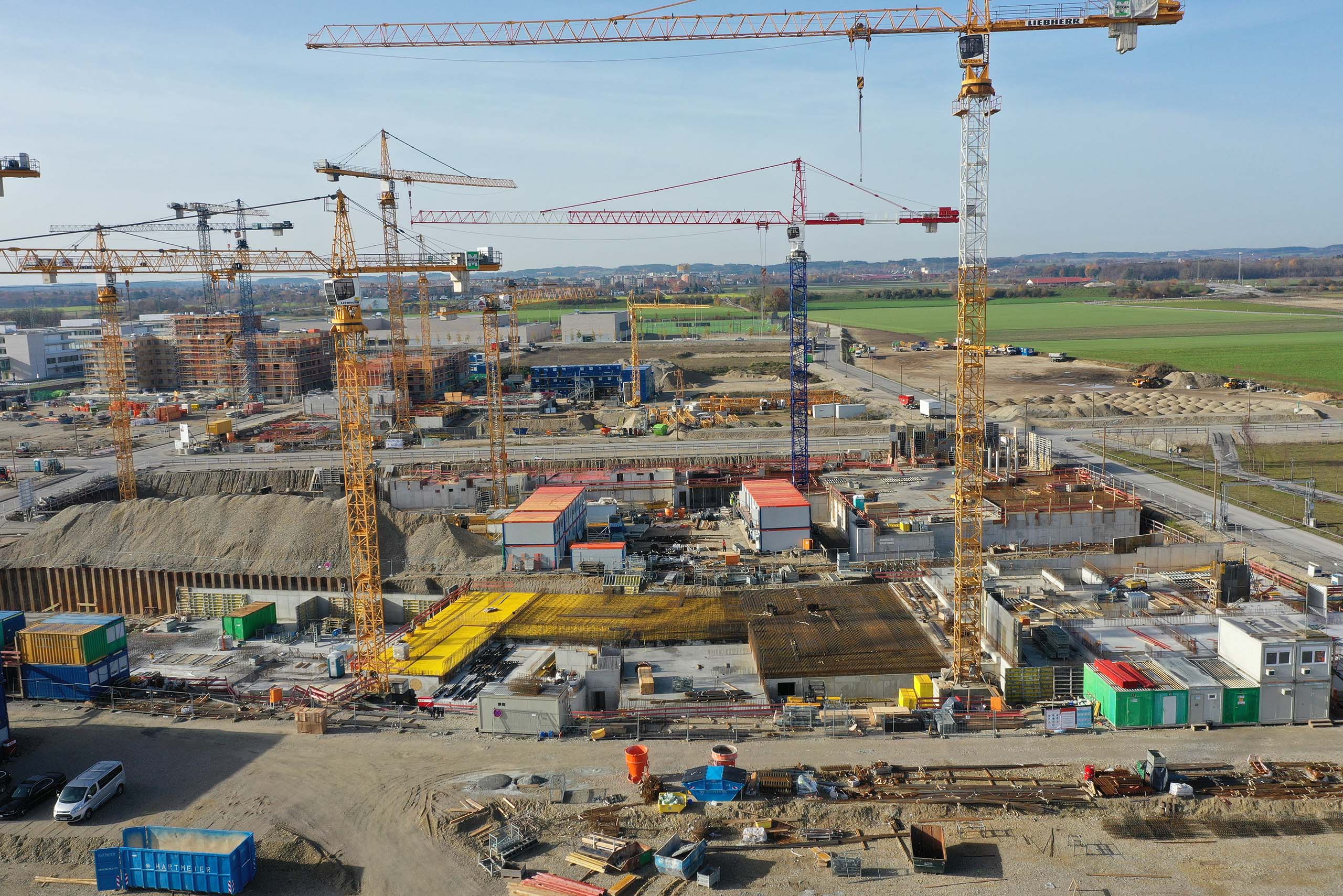 Bildungscampus im Rohbau. Im Freihamer Bildungszentrum wurde am 27.7.2018 Richtfest gefeiert: Die vier Schulen sind im Rohbau fertiggestellt. Es ist Münchens größtes Schulprojekt und wird 245 Millionen Euro kosten. Der Unterricht soll im Herbst 2019 beginnen. OB Dieter Reiter stichelte beim Richtfest gegen die „Transparenthalter“, nämlich Nachbarn oder politische Gegner, die vor jeder Baustelle demonstrieren und „versuchen, bauen zu verhindern“.39