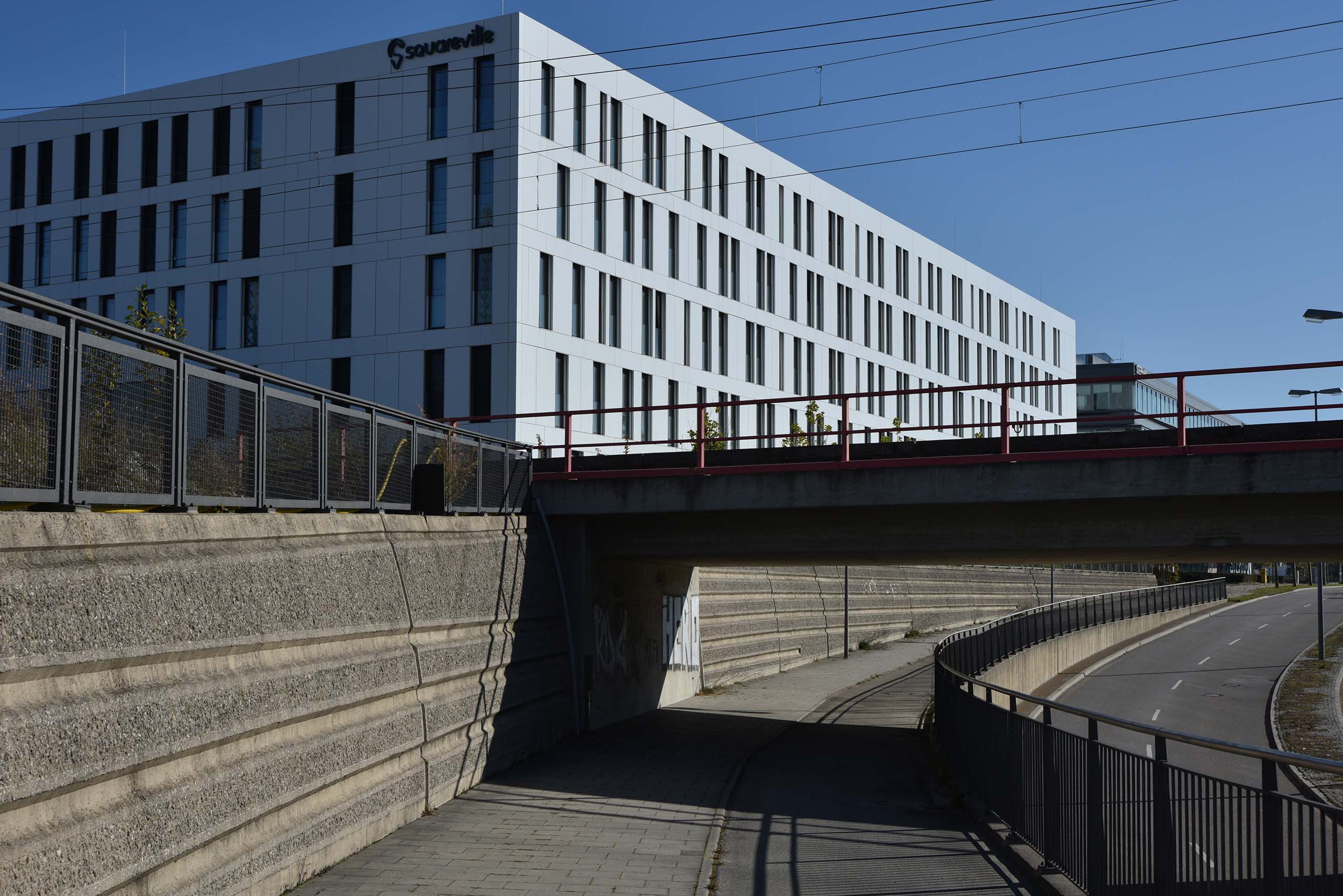 Aufgestelztes Freihamer Zentrum. Vier Baufelder am S-Bahn-Halt Freiham sollen das Zentrum werden: mit Geschäften, Gastronomie, einem Hotel, Büros und Wohnungen. (Architekten: Störmer Murphy and Partners GbR, Hamburg mit WES LandschaftsArchitektur, Hamburg). Die vier Felder hat im Sommer 2018 die Rosa-Alscher-Gruppe gekauft (siehe oben, 18.7.2018); 90.000 qm Geschossfläche sollen insgesamt für fast eine halbe Milliarde Euro errichtet werden. Architekt Alexander Rosa-Alscher trat für den Bau von „richtigen Hochhäusern“ ein: „Wir können auch nicht weiter immer nur in die Fläche bauen, dafür ist unser Land zu klein.“40