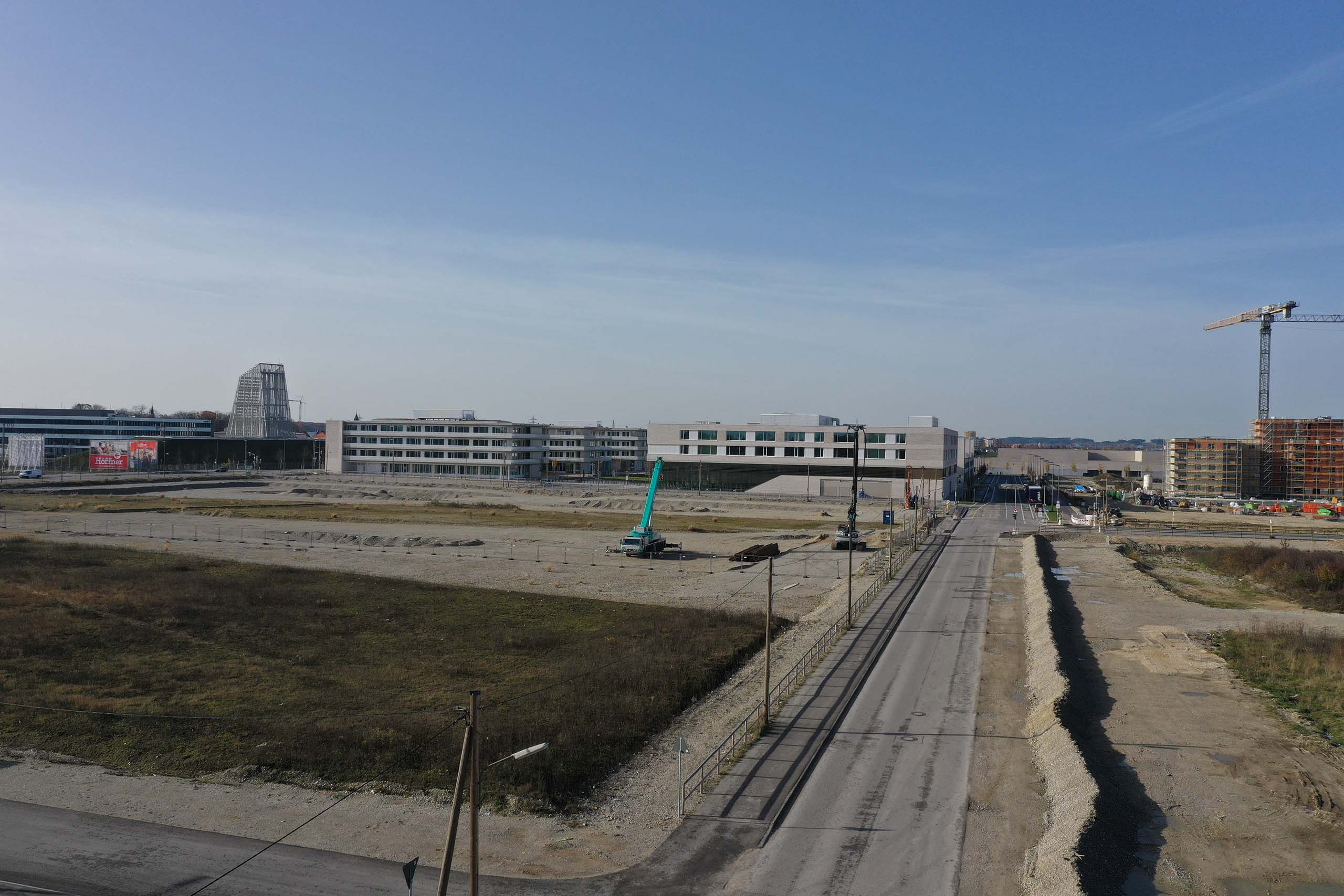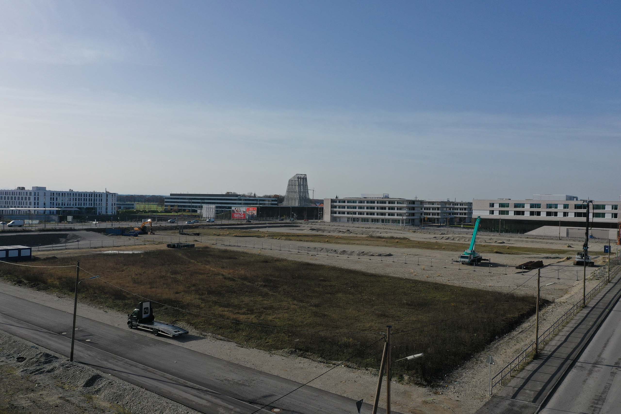 Februar 2018: Freihamer Entwicklungen. Der erste Bauabschnitt im Osten und Süden soll 2024 fertiggestellt sein, der zweite im Nordwesten ist in Planung und wird dichter bebaut. Um 2038 sollen hier in etwa 10.000 Wohnungen 25.000 Menschen wohnen. Dazu wird ein Bildungscampus gebaut mit einer fünfzügigen Grundschule, einer fünfzügigen Realschule, einem sechszügigen Gymnasium, dazu ein Förderzentrum, ein Sportpark, ein Stadtteilzentrum und 13 Kitas gebaut. 7500 Arbeitsplätze sind geplant. Der 58 Hektar große Landschaftspark soll 2022 zur Verfügung stehen.3031