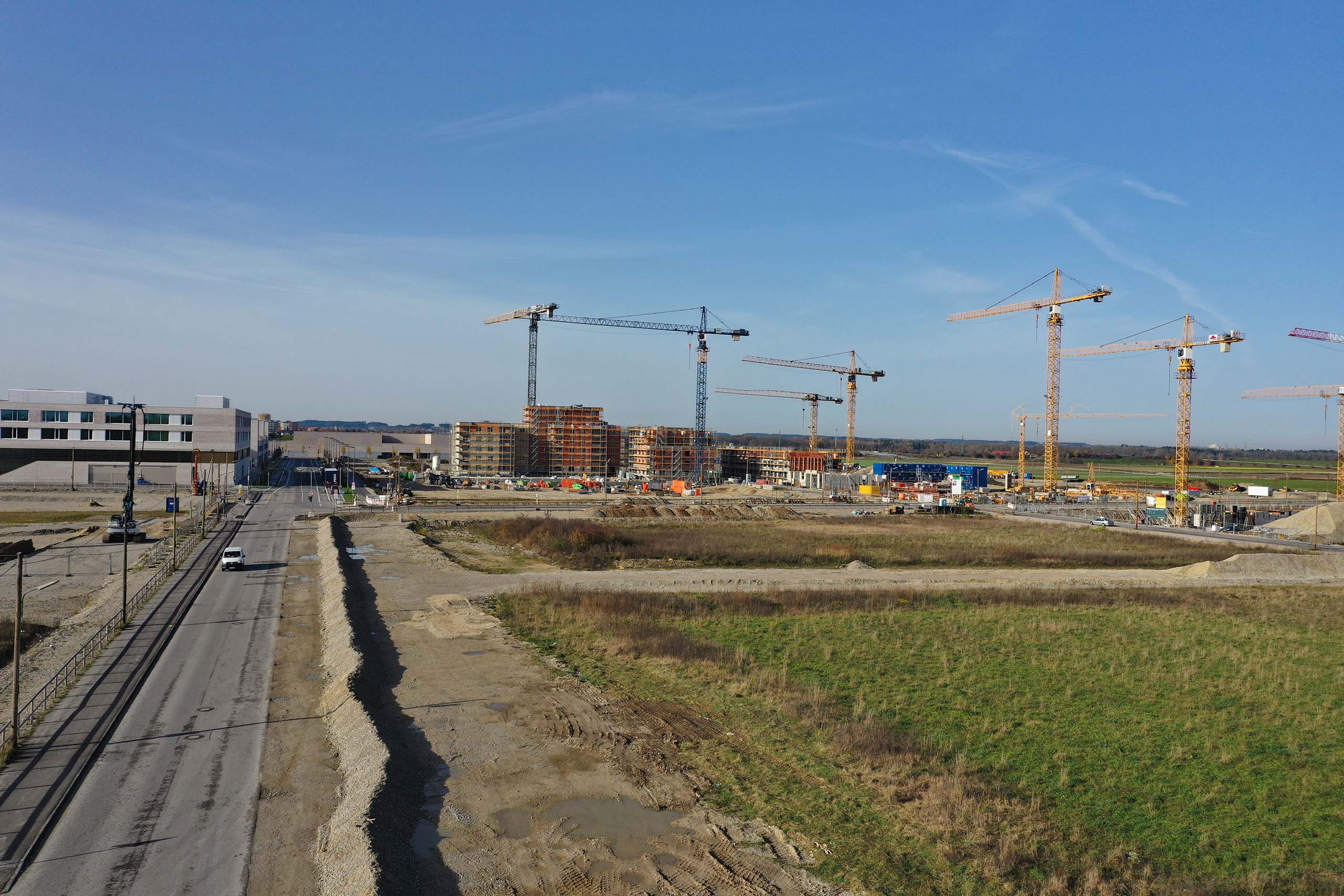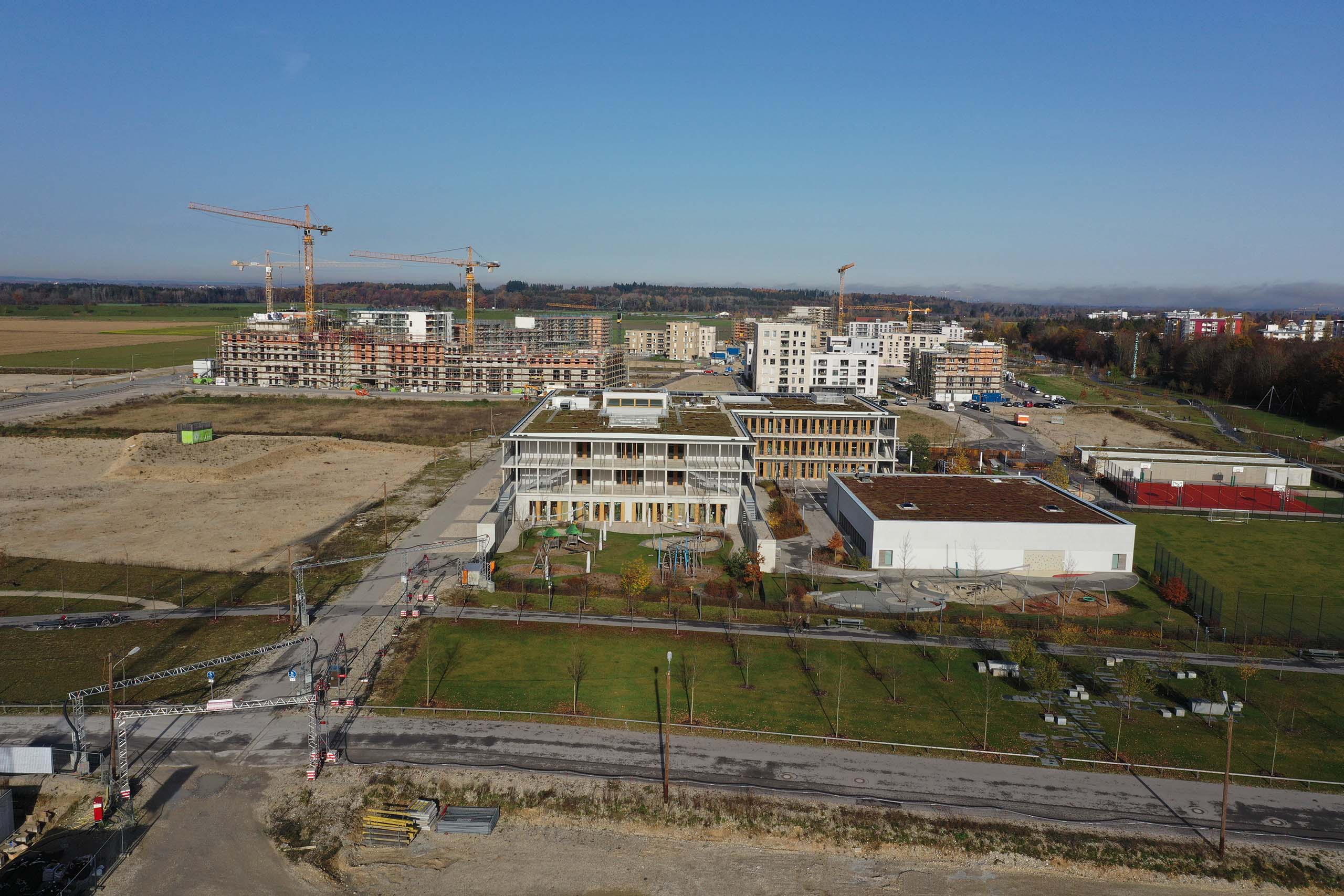 Zweiter Bauabschnitt (1). Der erste Bauabschnitt im Osten und Süden soll 2024 fertiggestellt sein. Für den zweiten Bauabschnitt auf 57 Hektar waren zunächst 5000 bis 6000 Wohnungen vorgesehen, jetzt sind es 7000. Der erste Preis des Architektenwettbewerbs für den zweiten Bauabschnitt mit rund 7000 Wohnungen ging an vier Büros: Hild und K Architekten (München), Sergison Bates Architects (London), von Ballmoos Krucker Architekten (Zürich), Studio Vulkan Landschaftsarchitekten (Zürich).32