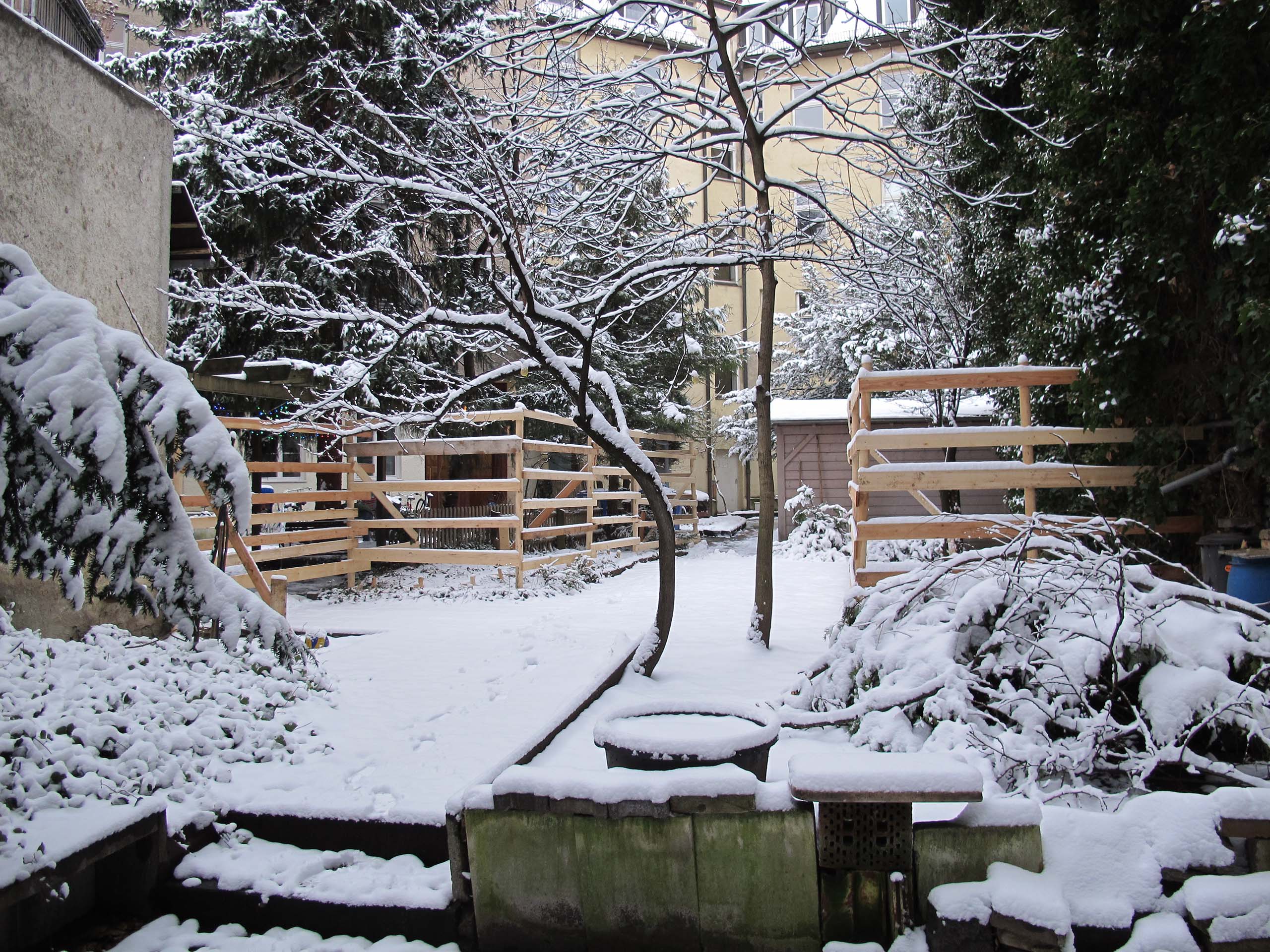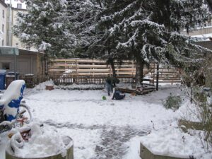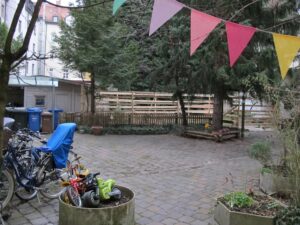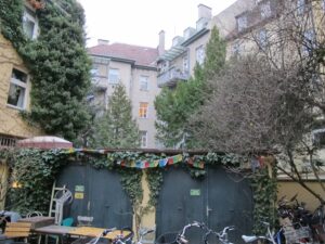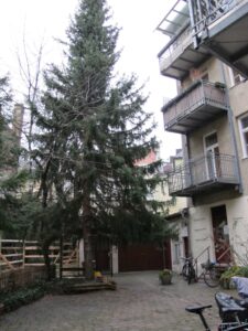 Baumfällungen. Bis zu neun Bäume müssten für den in den Hinterhof hinein gequetschten Neubau gefällt werden, darunter drei bis zu 15 Meter hohe Bergahorne. Bewohner berichteten von Buchfinken, Mauerseglern, Amseln, Meisen und Mönchsgrasmücken, der Hinterhof ist eine Oase für Fauna und Flora. Er wurde vor langer Zeit vom Verein Urbanes Wohnen ausgezeichnet. Die Bewohner wollen nun auch den BN einschalten und prüfen lassen, ob er unter Denkmalschutz gestellt werden könnte.2