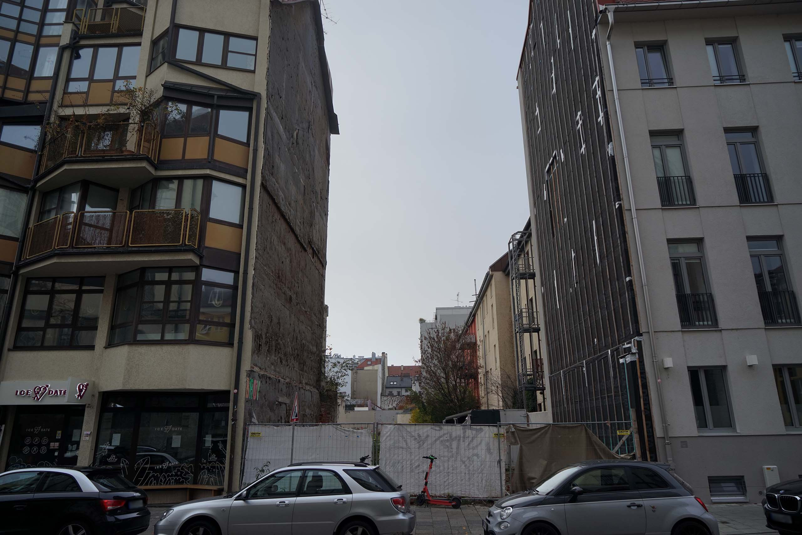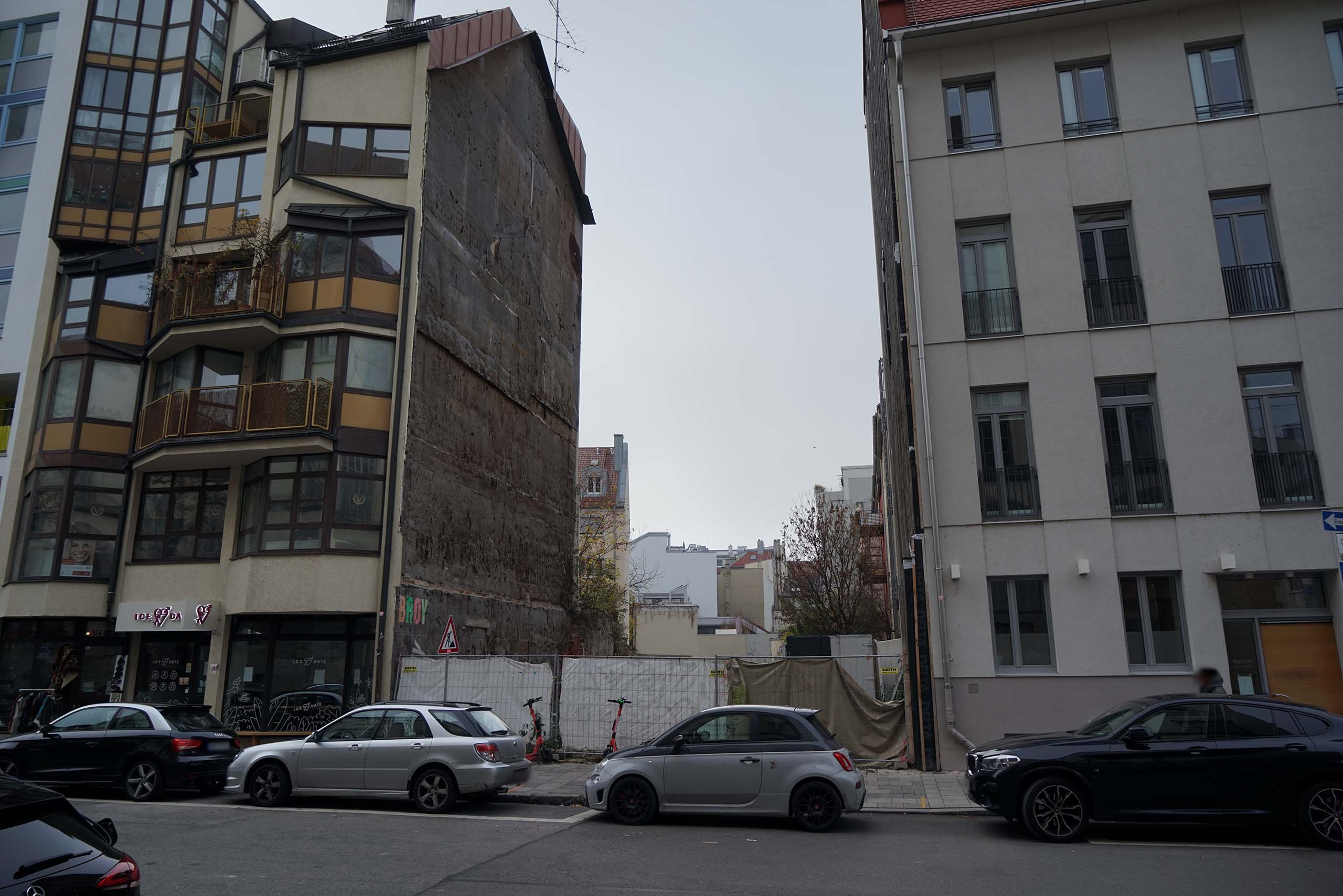 Keine Verzögerung beim Abriss. Auf einer Sitzung der Stadtgestaltungskommission 1992 hatte Ministerialdirigent Rainer Franz behauptet, die Staatsbauverwaltung habe festgestellt, dass die Tragkraft der Decken nur noch unter 100 Kilogramm liege. Für Heimatpfleger Burmeister und den BA wäre das Gebäude aus Denkmalschutzgründen erhaltenswert. Inzwischen ist der Abriss des Eckgebäudes und der Nachbarhäuser plus Rückgebäude in der Schellingstraße in vollem Gang. Wenigstens die „handwerklich einmaligen“ Einfahrtstore sollten auf Antrag des BA und des Vereins zur Erhaltung denkmalgeschützter Wohnhäuser in der Maxvorstadt (VEM) e. V. gesichert werden. Das Landesamt für Denkmalpflege schrieb, es sei ebenfalls daran interessiert, die Torbögen zu retten, es sei aber kein Aufbewahrungsplatz vorhanden.3