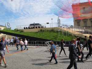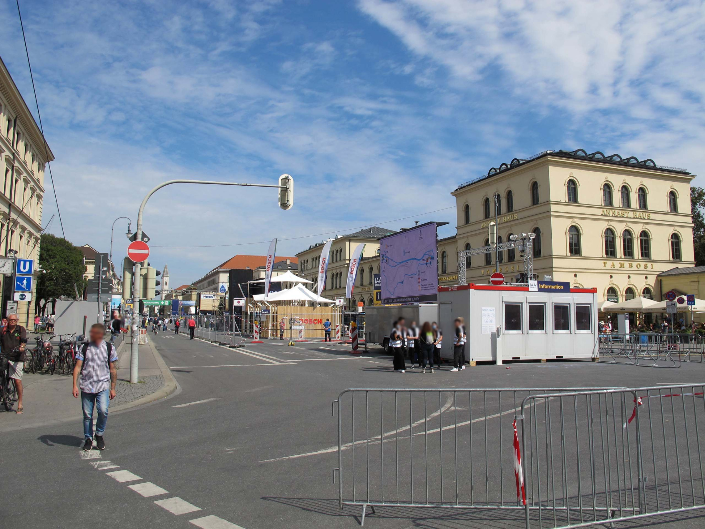 Kein Protest-Camp? Die IAA belegt mit ihrem „Open Space“ flächendeckend die Münchner Innenstadt. Ob aber Protestierende auf der Theresienwiese ein Camp errichten dürfen, war Mitte August nach wie vor fraglich. Im KVR wurde argumentiert, es sei unklar, ob ein solches Camp mit dem Versammlungsrecht in Einklang sei.19 Das KVR prüfte auch den Alternativ-Standort Riemer Park für das Camp; dies wiederum traf auf heftigen Widerstand des Bezirksausschusses Trudering – Riem.20