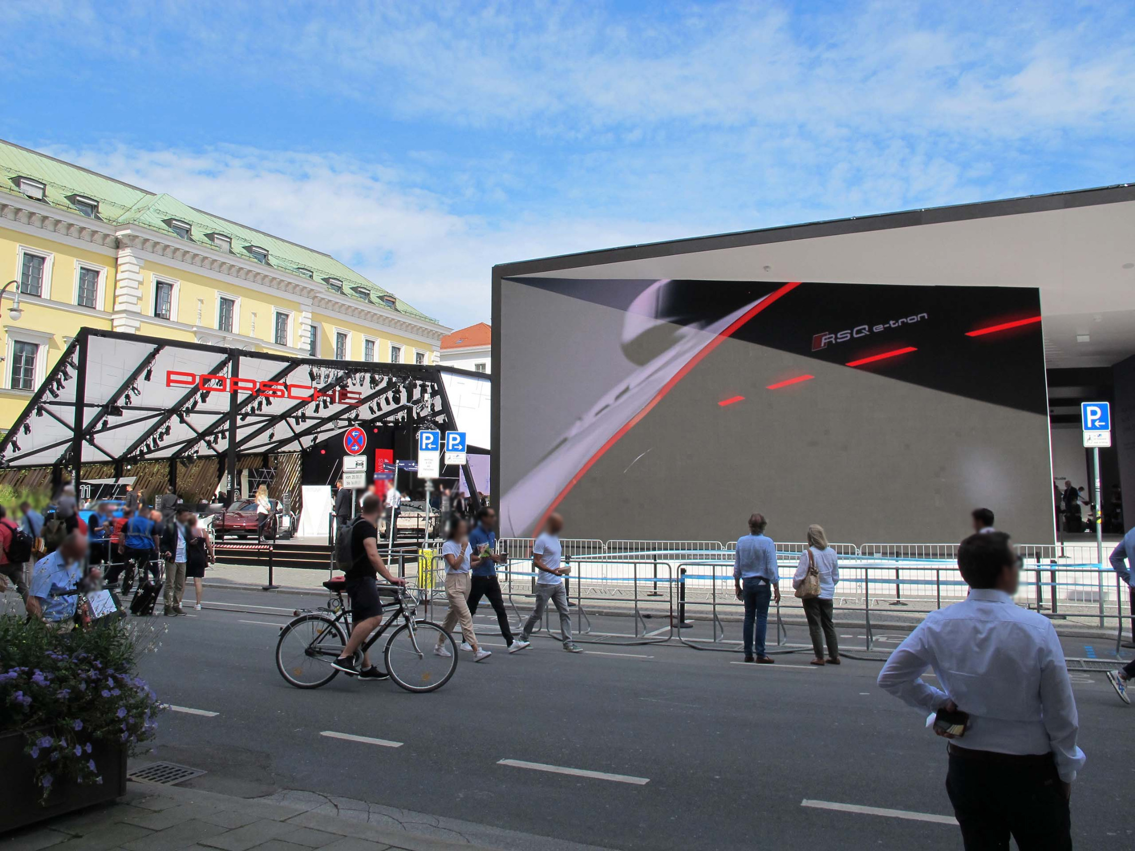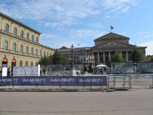 IAA München 2023. Sie soll vom 5. bis 10.9.2023 stattfinden, verlautbarten die Veranstalter Messe München und VDA. Das Thema heißt neudeutsch „Experience Connected Mobility„. Die „Blue Lane Micromobility & Bike“ wird wieder auf gut 15 Kilometer Länge zwischen dem Königsplatz und der Messestadt eingerichtet, die U 2 für diese Zeit in „Blue Lane Unterground“ umbenannt. Nach massiver Kritik an der Übernahme der schönsten Münchner Innenstadt-Plätze bei der IAA 2021 findet eine Mini-Korrektur statt: Der Odeonsplatz wird nicht mehr durch den „Open Space“ belastet, sondern verlagert sich von dort in die Ludwigsstraße. Ansonsten darf sich die IAA wieder wie gehabt austoben: u. a. am Wittelsbacherplatz, Königsplatz, Marstallplatz, Max-Josef-Platz und Marienplatz sowie den Residenzhöfen, der Hofgartenstraße.57
