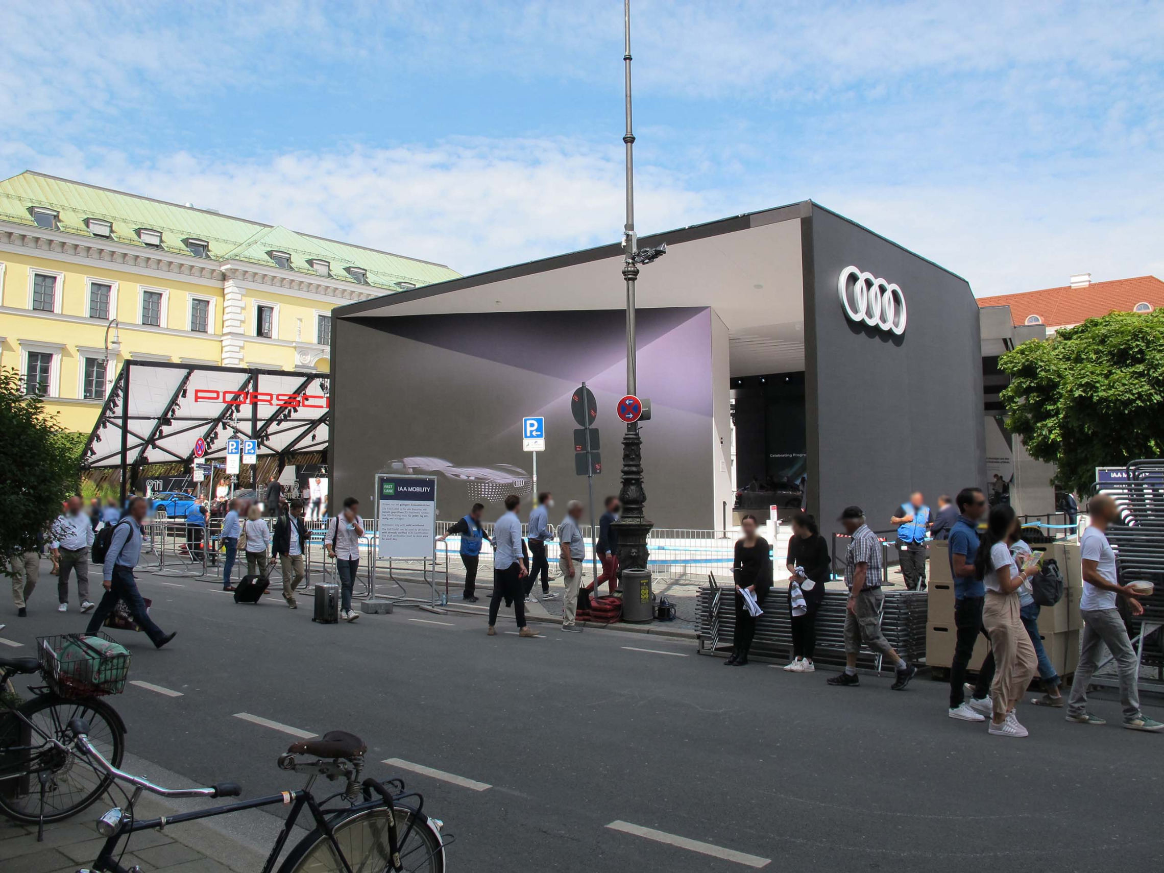 2023: Etwas weniger. Um die Kritik an der IAA 2021, vor allem an den überbordenden Open Spaces auf öffentlichen Plätzen, aufzuarbeiten, hat sich ein Runder Tisch gebildet: Vertreter des Stadtrats, der betroffenen BAs, der Veranstalter Messe München und VDA und Umweltverbänden. Am 31.5.2022 wurden dessen Ergebnisse bei einer Sitzung des Wirtschafts- und Kreisverwaltungsausschusses besprochen. Ergebnisse sind u. a.: Der Platz vor der Feldherrnhalle soll ein „konsumfreier Ort“ werden, das IAA-Geschehen dafür in die Ludwigstraße verlagert werden. Der Open Space am Königsplatz soll um 2000 qm reduziert werden, um Wege für Fußgänger und Radler zu schaffen. Die Blue Lane wurde als Fehlschlag bezeichnet, da sie von anderen Autofahrern genutzt wurde und dadurch Staus erzeugte. Die Pläne kollidieren mit den Konditionen der Bewerbung um die IAA. Wirtschaftsreferent Clemens Baumgärtner (CSU) warnte vor dem Verlust der IAA und möglichen Schadensersatzforderungen. Am 29.6.2022 sollen etwaige Änderungen in der Vollversammlung des Stadtrats beschlossen werden.48