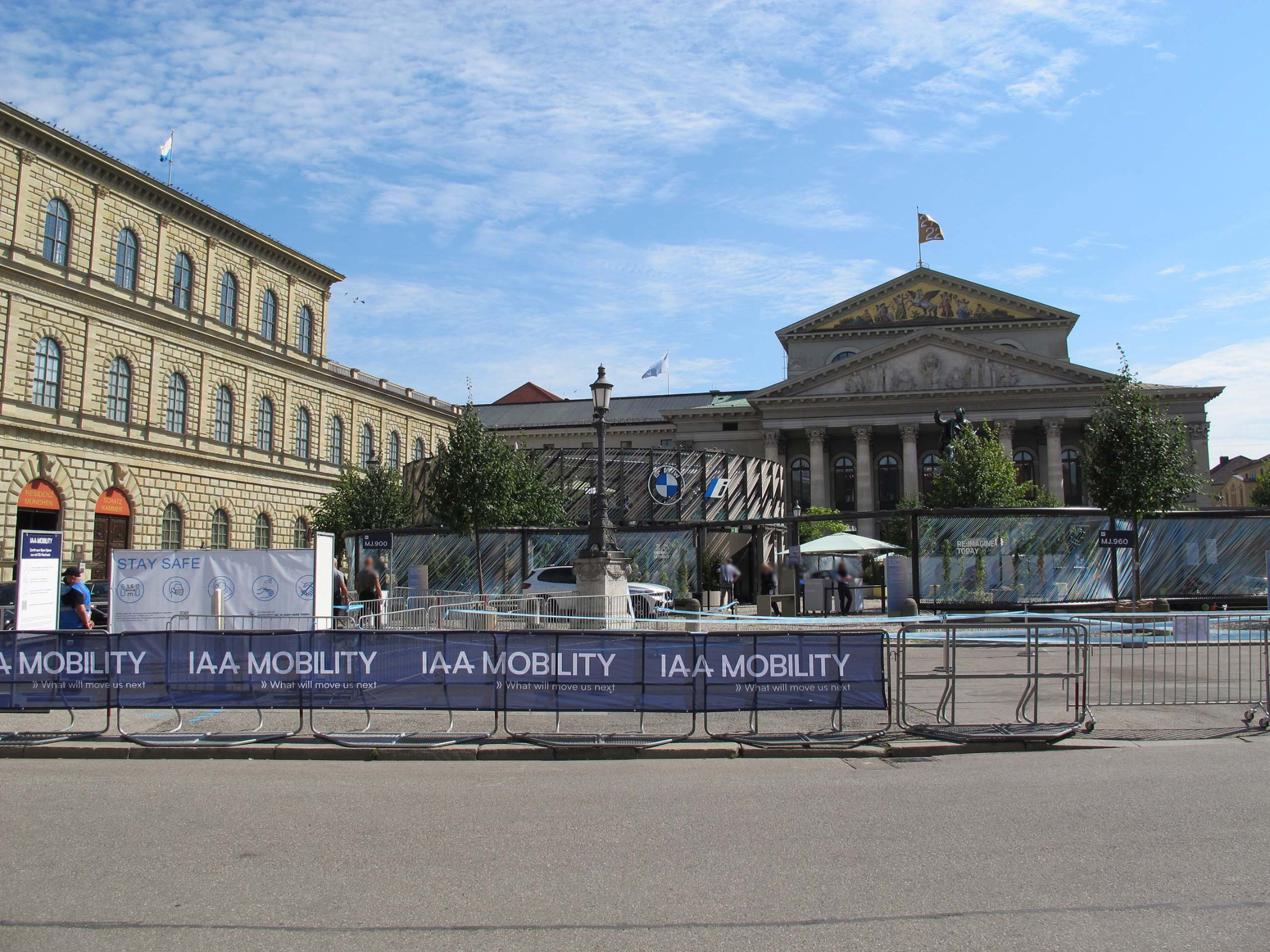Wirtschaftsreferent Clemens Baumgärtner (CSU) verteidigte sie als „Blaupause der klassischen Umweltspur“. Die IAA Mobility darf den Max-Joseph-Platz, den Wittelsbacher Platz, den Odeonsplatz, den Marstallplatz, die Residenzhöfe, den Marienplatz und den Königsplatz nutzen – letzteres sehr zum Ärger des BA 3 Maxvorstadt, der gegen neue Großveranstaltungen auf der Grünfläche eintritt. Auch der Direktor der Staatlichen Antikensammlung und Glyptothek, Florian Knauß, war bei der BA-Sitzung verärgert über den Umgang mit dem denkmalgeschützten Ensemble Königsplatz: Letztlich sei es „dem Königsplatz egal, ob er von einem SUV oder einem Elektrofahrzeug getötet wird“.6