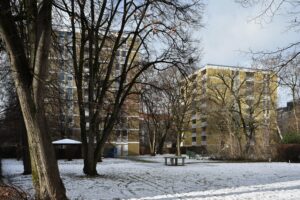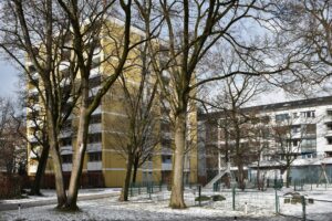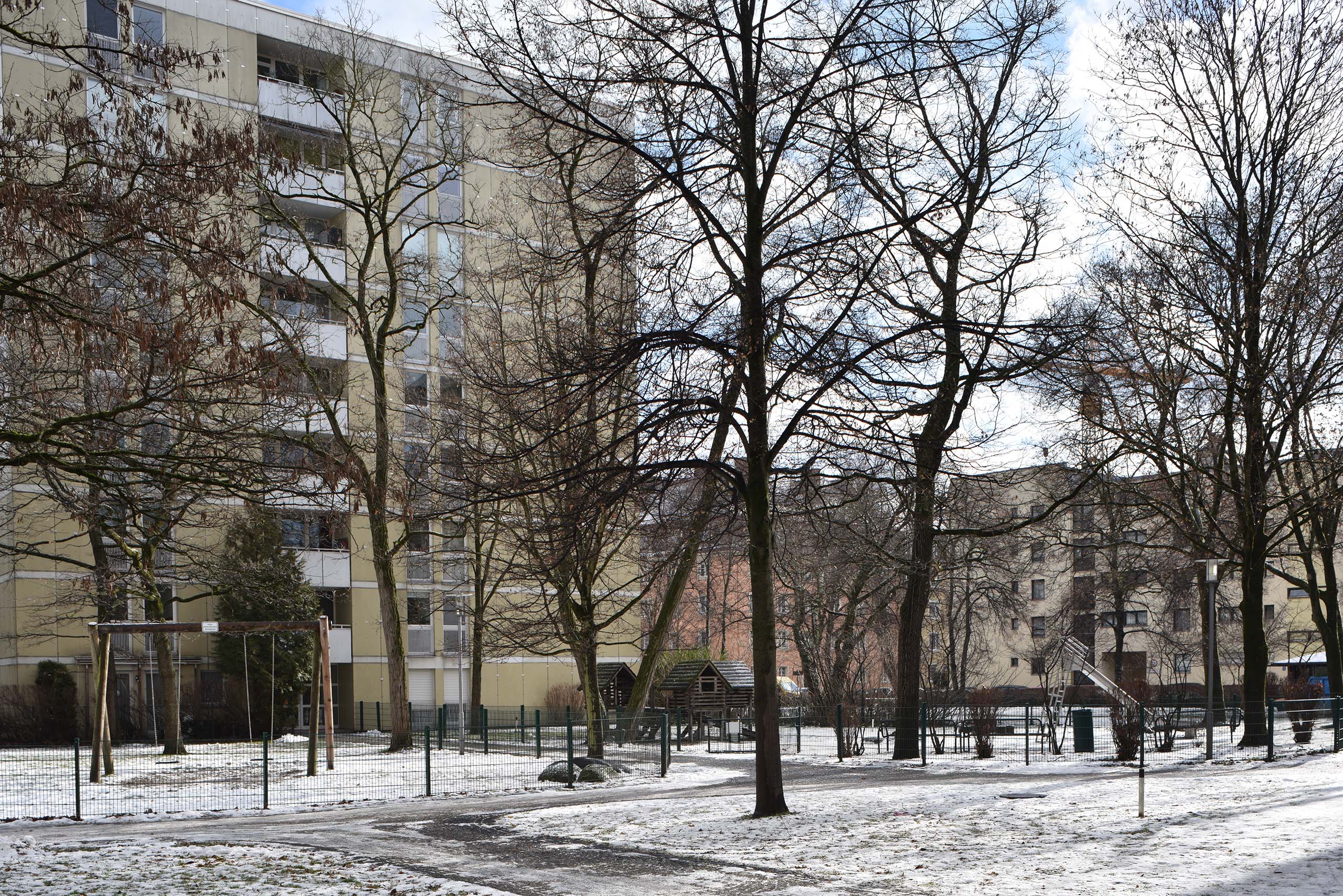 Dazu sollen bestehende achtstöckige Punkthäuser aufgestockt werden. Martina Burwitz (Grüne), Mitglied im BA Schwabing-West, wohnt selbst dort: „Nicht nur jede Menge alter Bäume und 90 Prozent unserer Grünfläche samt Kinderspielplatz müssten für diese Betonburg plattgemacht werden.“2 44 Wohnungen würden Fenster verlieren und dunkle Räume bekommen. Isabella Kratzer, eine Sprecherin der Bayern Versicherung Lebensversicherung AG, wiegelt ab: „Als regionaler Versicherer ist uns die Wohnungsknappheit in Großstädten wie München sehr bewusst.“2