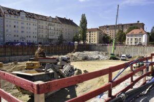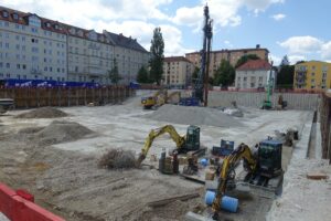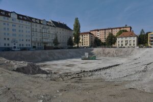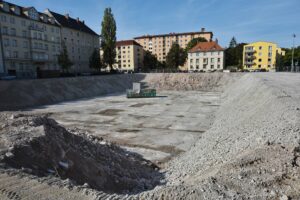 Baugrube fast fertig. Der Rohbau soll in einigen Monaten beginnen, so Stefan Pfender, Geschäftsführer der Ariston GmbH. Als nächstes wird die dreigeschossige Tiefgarage betoniert. Im Sommer 2025 soll der Bau bezugsfertig sein. Der BA Schwabing – West würde weiterhin gern mit Investor und Verwaltung einen Termin vor Ort vereinbaren: angesichts der zu erwartenden Verkehrsprobleme durch 1000 neue Arbeitsplätze.7