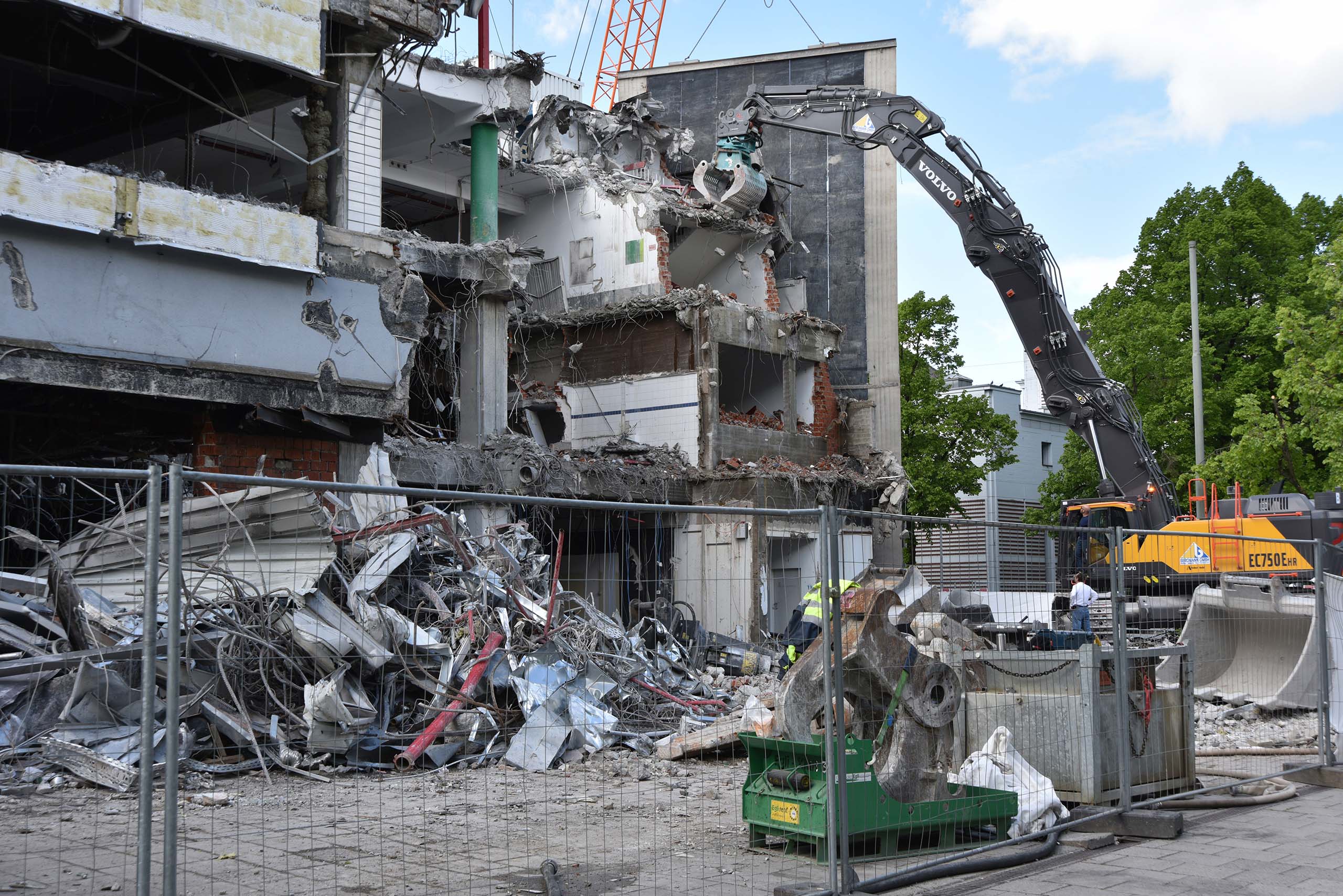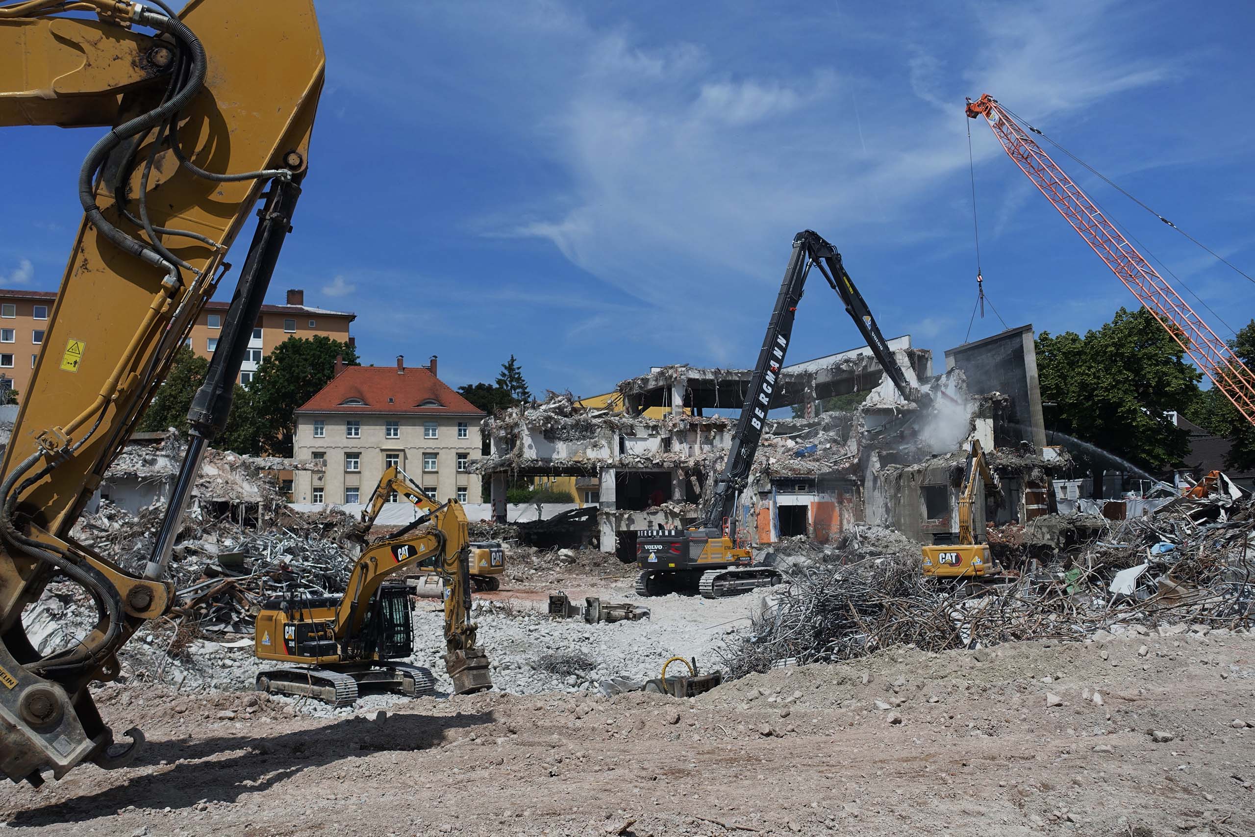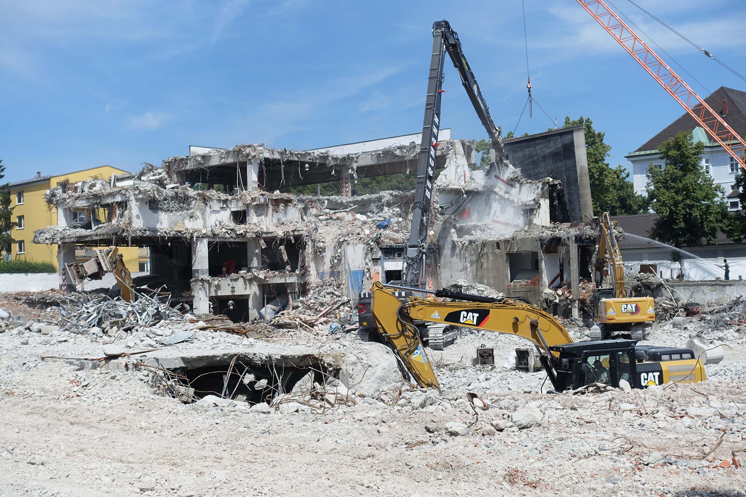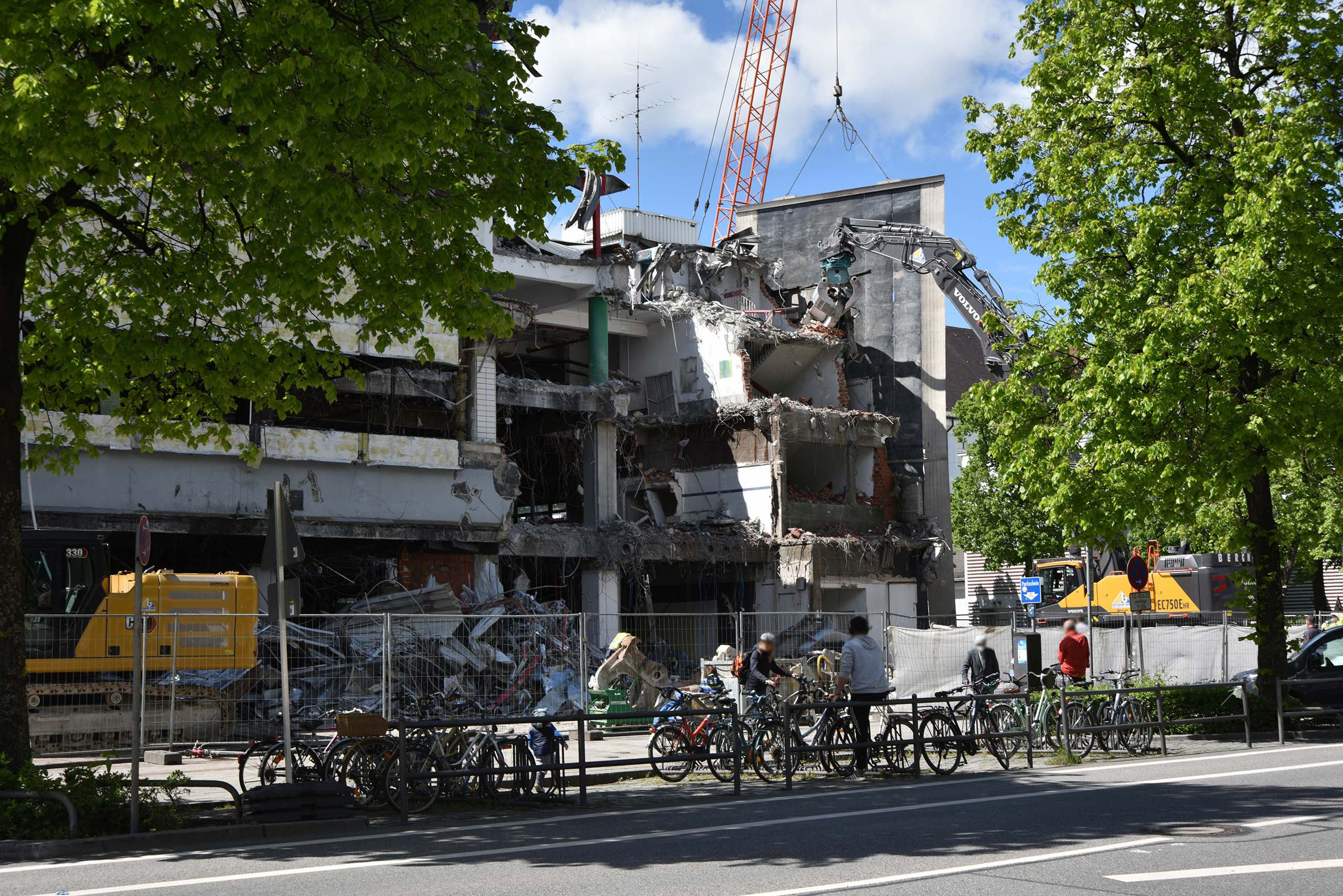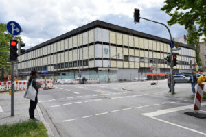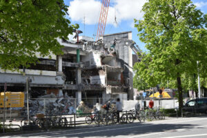 Der Abriss. Ab 8.2.2021 begann der Abriss. Die Aristo Grundbesitz GmbH & Co. 8. Beteiligungs KG hatte die Münchner Firma Bergmann beauftragt. Geplant sind ein Supermarkt mit 2500 qm und Büros für 1000 Arbeitsplätze. Die Pläne stammten zunächst vom Architekturbüro Oliv GmbH Thomas Sutor. Später wurde ein Architektenwettbewerb ausgeschrieben. Die Bauvoranfrage lag seit Längerem bei der LBK. Der BA 4 Schwabing-West hat die Pläne abgelehnt und präferierte nach wie vor Wohnungen statt Büros.3