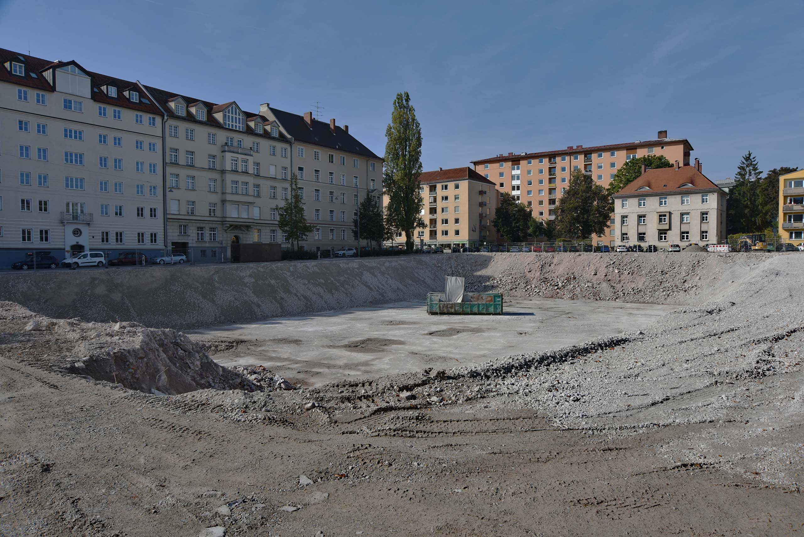 Architekturwettbewerb entschieden. Das Münchner Büro Schluchtmann Architekten gewann den Wettbewerb für den Neubau – vor den Münchner Büros Allmann Sattler Wappner, Henn Architekten und Oliv Architekten. Zwölf Büros aus Europa hatten sich beteiligt. Der erste Preis zeigt eine Orangerie auf dem Dach. Darunter werden 1000 Arbeitsplätze mit rund 28.000 qm Bürofläche geplant – plus einer Markthalle im Erdgeschoss und Gewerbeflächen im ersten Untergeschoss. Darunter wird eine Tiefgarage mit 377 Stellplätzen gebaut, davon sind 100 für Anwohner. Der BA hatte Wohnungen gefordert, das Planungsreferat dies aus rechtlichen Gründen abgelehnt.56