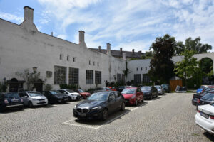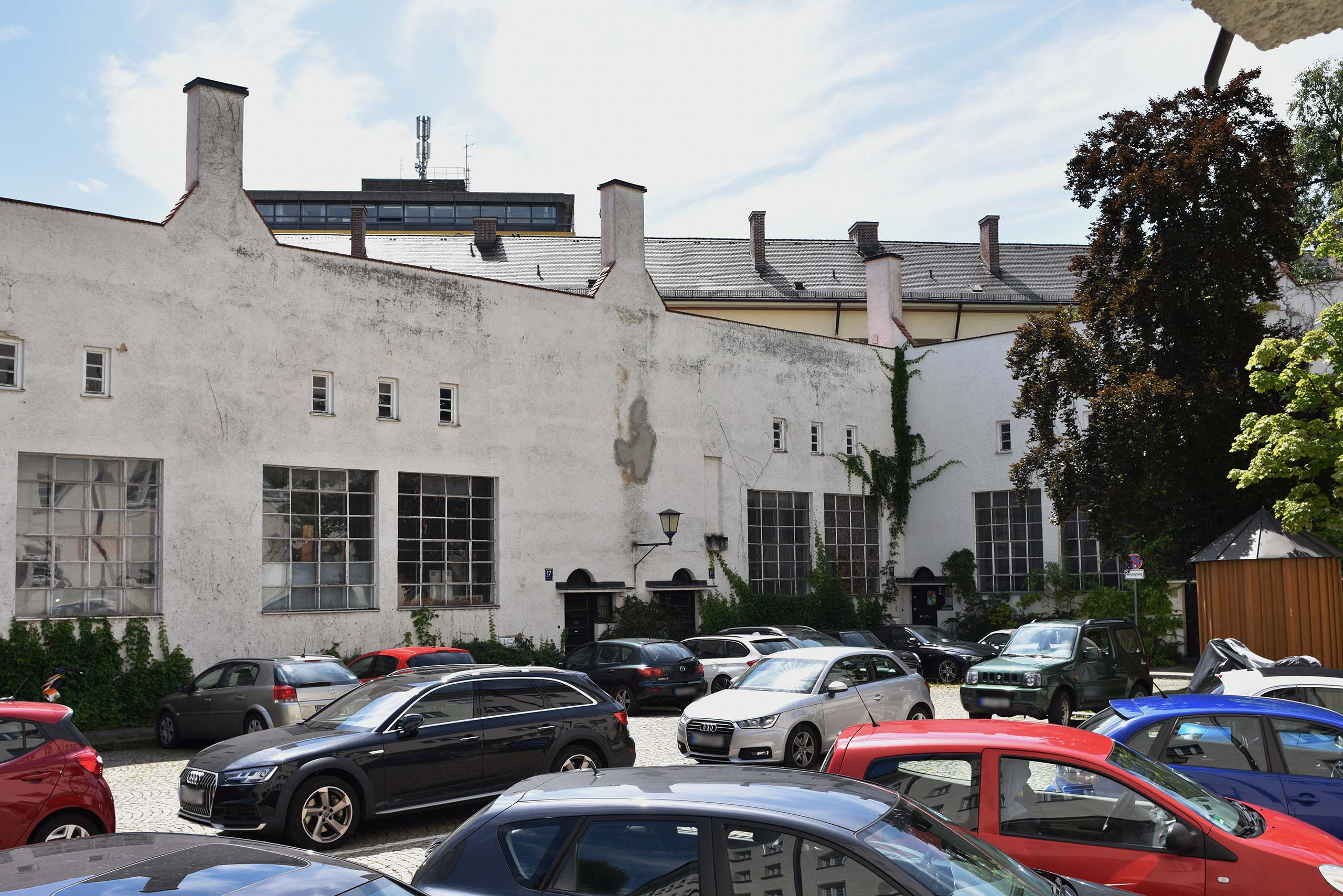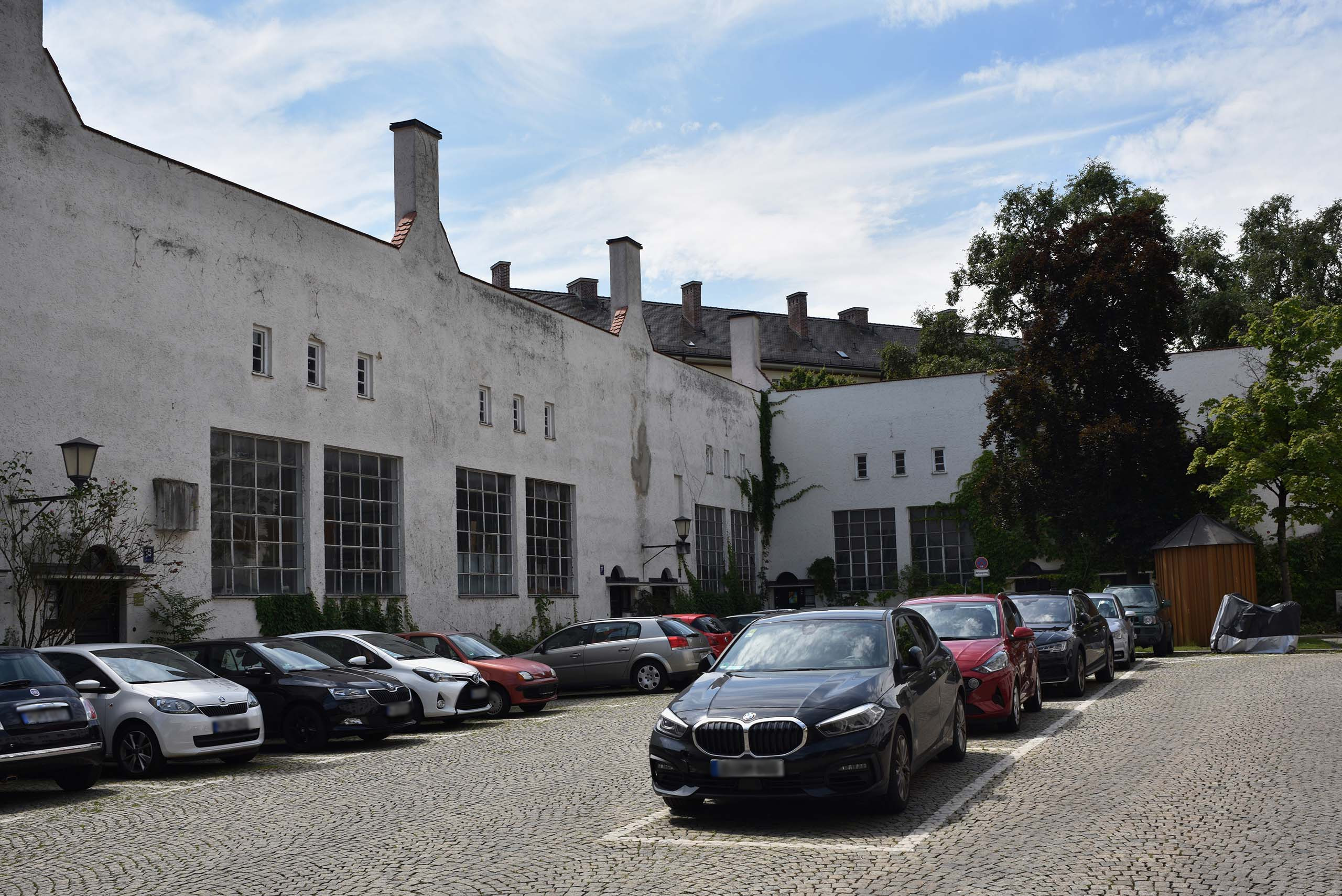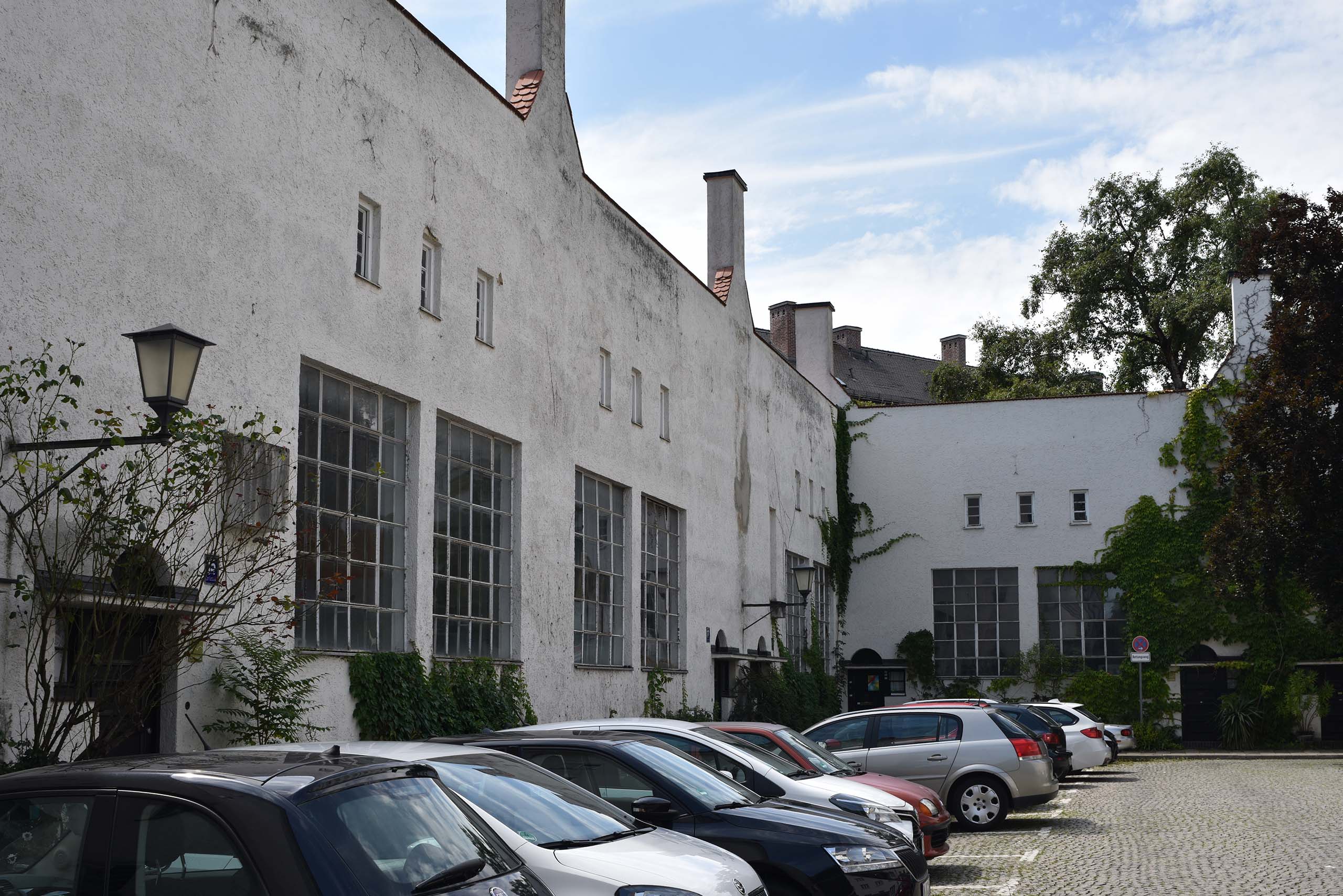 „Der Name verweist auf eine Gruppe von Künstlerateliers, die um einen kleinen, pittoresk gestalteten Innenhof angelegt wurden. Schon in dieser eigentümlichen Wahl einer eher ungewöhnlichen Siedlungseinrichtung zeigt sich der hohe Anspruch der Anlage, der aber vor allem durch die großzügige Disposition der Wohnungen zum Ausdruck gebracht werden sollte. Mit einer Durchschnitts-fläche von 71,4 qm wurden die Grundrisse in der Regel komfortabler als in den anderen Münchner Siedlungen bemessen. Die Bandbreite in der Größe der Wohnungstypen reicht dabei von 58 qm bis zu 105 qm.“2