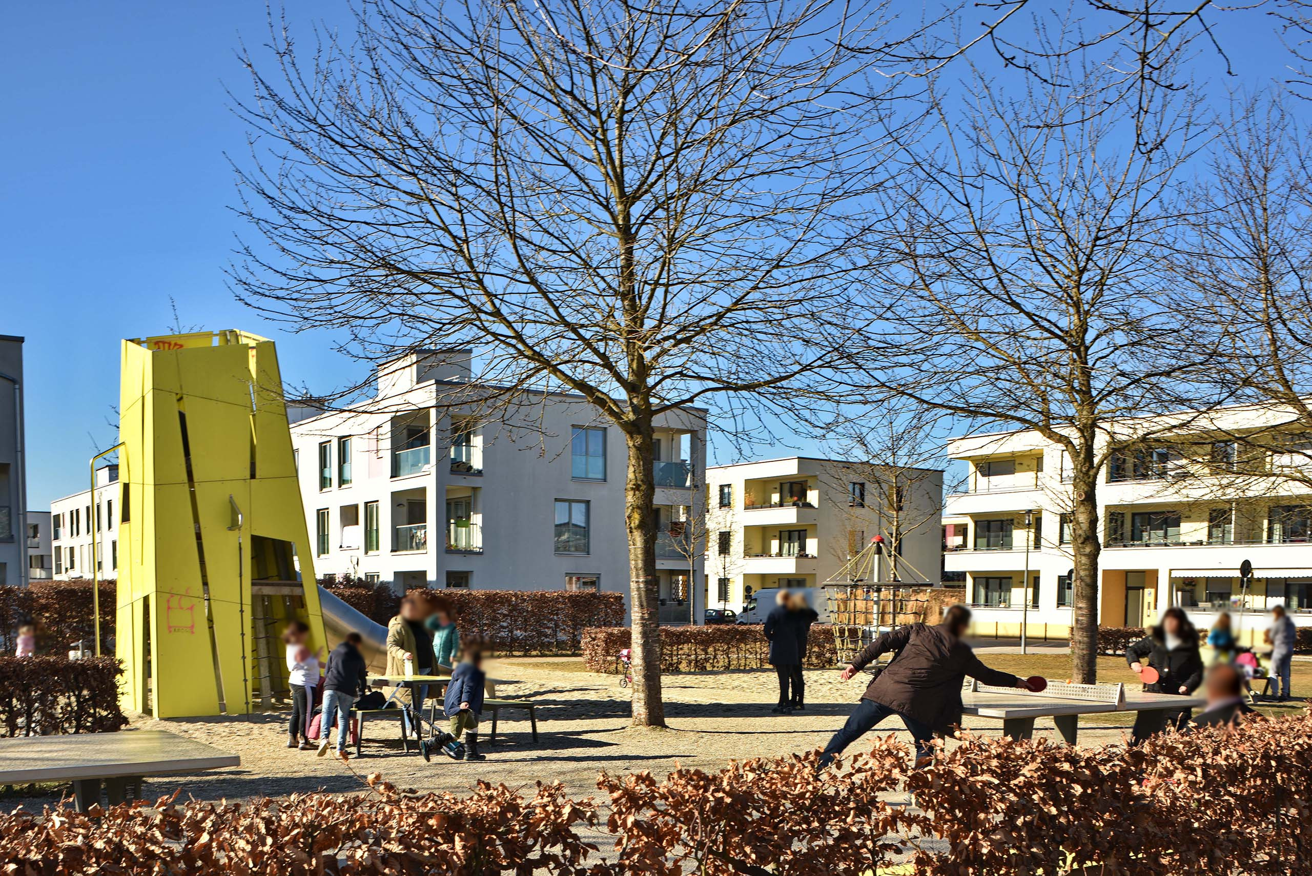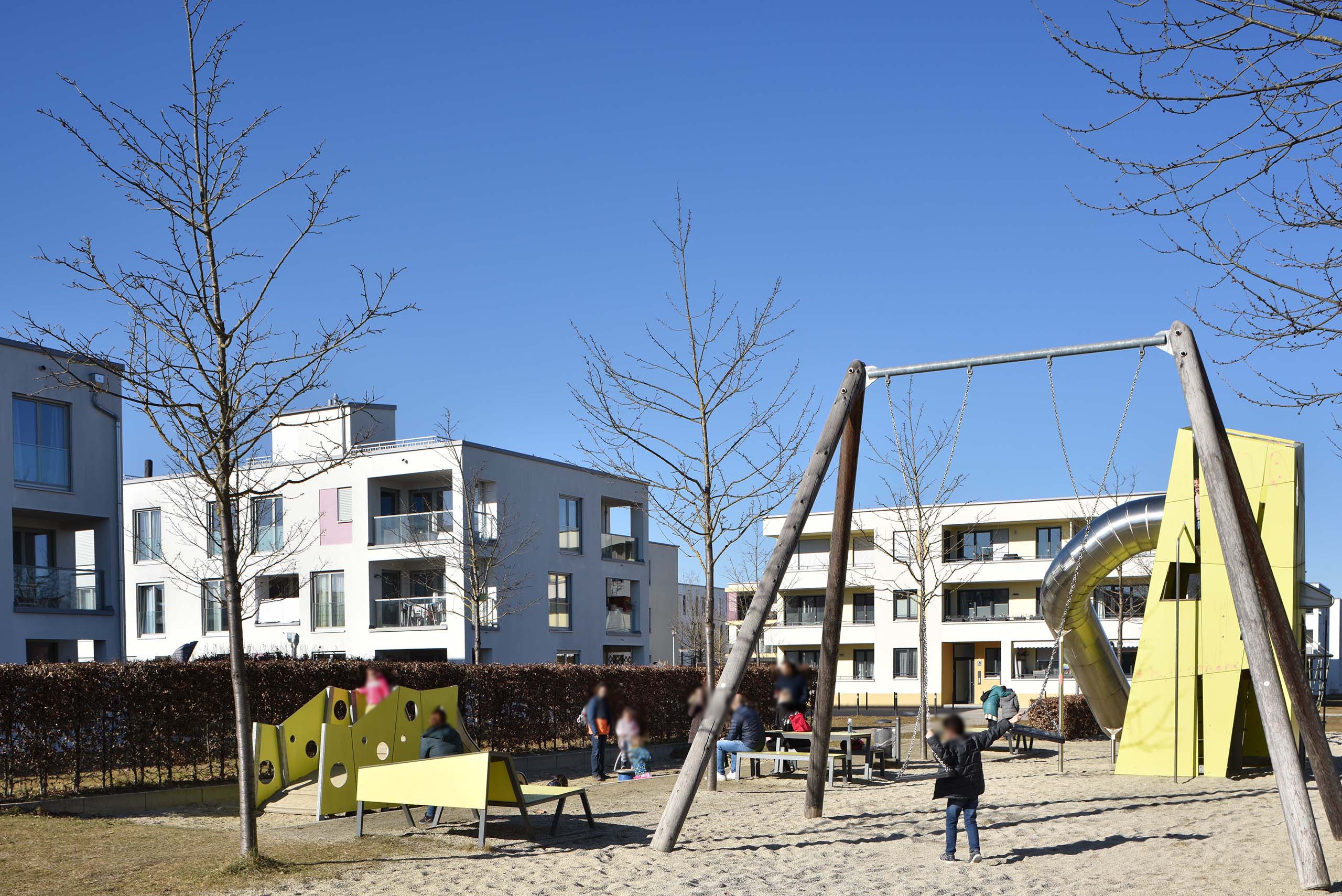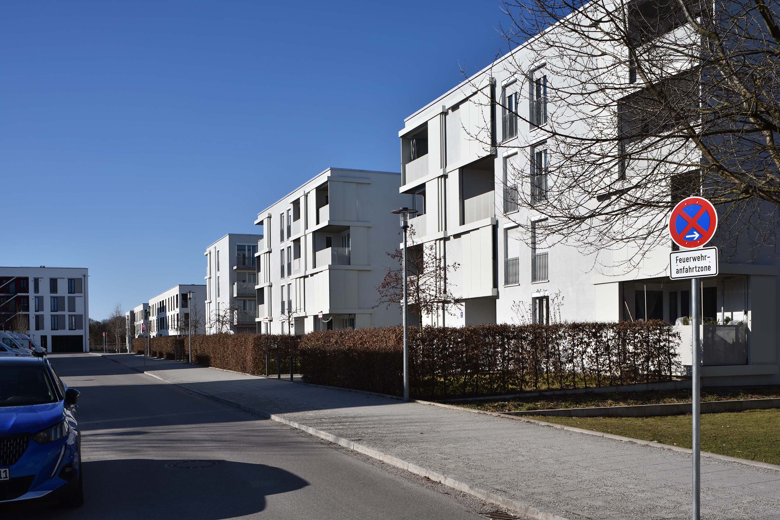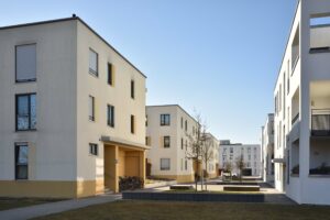 Fünfter Bauabschnitt. 25 Hektar werden von vier privaten Grundeigentümern plus die Stadt München mit 2500 Wohnungen zugebaut. Den ersten Platz im Architekturwettbewerb gewann Büro 03 Arch aus München: Im Zentrum von Baufeldern sind kleine Hochhäuser vorgesehen. (Zur Erinnerung: Büro 03 Arch verfasst auch die neue Münchner Hochhausstudie.) Die Stadtratsfraktion Grüne/Rosa Liste kritisierte die „massive Unterbauung“ des neuen Quartiers und plädierte für das „Schwammstadt-Prinzip“ mit weniger Versiegelung. Insgesamt sollen im Osten Münchens weitere 7000 Wohnungen entstehen: Neben den 2500 im fünften Bauabschnitt der Messestadt Riem noch rund 1500 Wohnungen im Projekt „Heltauer Straße“ und „Rappenweg“ mit bis zu 3400 Wohnungen.81