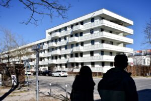 Armut in der Messestadt. Im städtischen Armutsbericht 2004 fielen von 1000 Bewohnern der Messestadt Riem 405 in die Kategorie „arm“. Die angestrebte sozioökonomische Mischung wurde nicht erreicht. In den bislang realisierten Bauabschnitten liegt der Anteil von Sozialwohnungen überdurchschnittlich hoch; Eigentumswohnungen wurden erst wenige realisiert. Die öffentlich geförderten Wohnungen würden mehrheitlich von „Armutsrisikogruppen“ belegt. Nichtdeutsche Bewohner haben einen Anteil von 38 Prozent. Vom zweiten Bauabschnitt (alle Flächen vergeben) und vom dritten Bauabschnitt (zu 80 Prozent vergeben) sind keine großen Änderungen zu erwarten. Durch mehr Grundstücke für den frei finanzierten Wohnungsbau käme mehr Geld in die städtischen Kassen, außerdem käme dies Bauträgern entgegen, die sich vor dem Imageschaden fürchteten.50