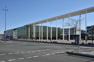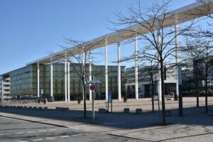 Neue Messe heute: „Die Messestadt Riem ist ein Stadtviertel im Osten Münchens. Die Messestadt Riem, Teil des Stadtbezirks 15 Trudering-Riem, befindet sich komplett auf dem Gelände des 1992 stillgelegten Flughafens München-Riem und beherbergt heute neben einem Wohnviertel für 16.000 Menschen zahlreiche Bürogebäude sowie die Neue Messe München und das Einkaufszentrum Riem Arcaden.“ (Aus Wikipedia, abgerufen 13.3.2021) Auf 556 Hektar des ehemalige Riemer Flughafens wurde die Messestadt Riem für 16.000 Einwohner und das neue Messegelände geplant.1