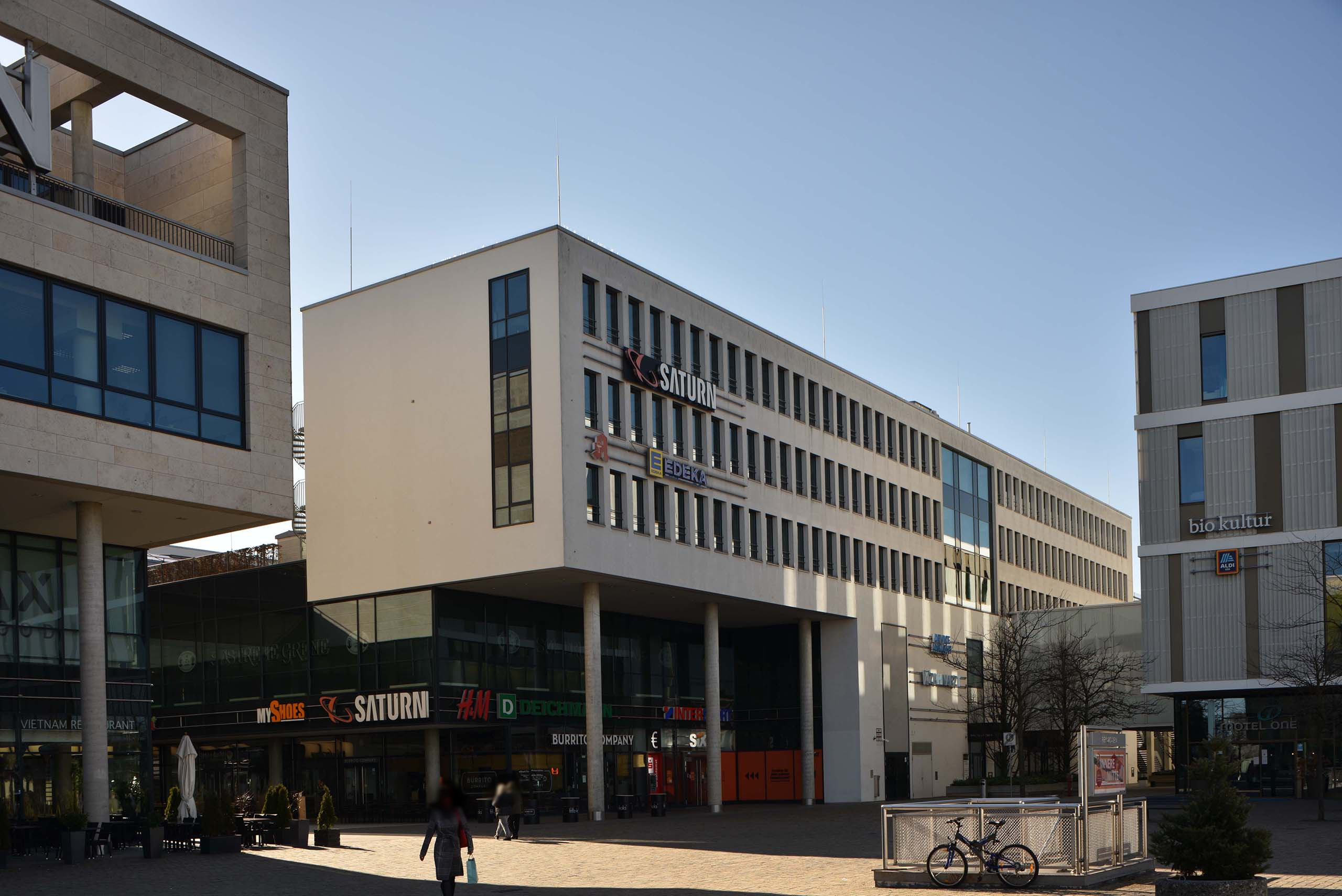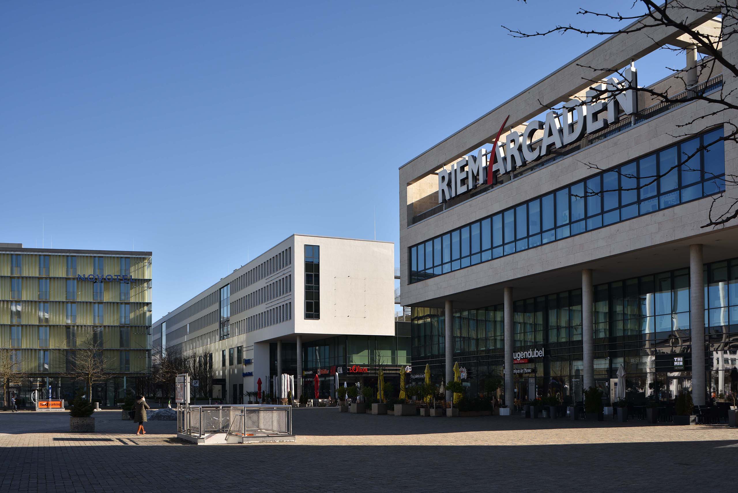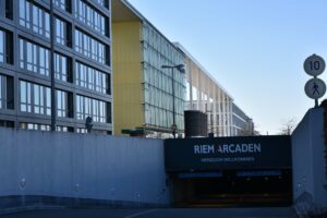 März 2004: Riem Arcaden eröffnet. Am 10.3.2004 eröffnete das Einkaufszentrum Riem Arcaden: mit 120 Läden auf 30.000 qm auf drei Ebenen. Dazu wurden 33.000 qm Bürofläche, 60 Wohnungen und 2500 Parkplätze gebaut. Der Bau der Riem Arcaden begann 2001: Er hat um 500 Millionen Euro gekostet. Bauherren waren die Management für Immobilien AG (mfi) und die Deutsche Immobilien Fonds AG (Difa; heute: Union Investment Real Estate AG), welche 2004 die „Fünf Höfe“ von der HypoVereinsbank gekauft hat. In der Messestadt Riem lebten aktuell 3000 Bewohner, später werden es 17.000 sein.48