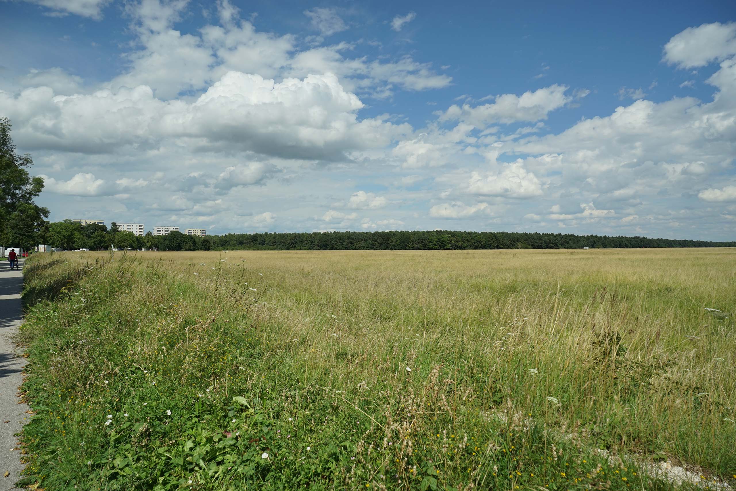 Wechselnde Grundstückseigner. Die Stadt München hat in den zwanziger Jahren des 20. Jahrhunderts „Bauvorratsgelände“ am Feldmochinger Anger im Hasenbergl gekauft. Zwischenzeitlich übernahm sie den Flughafen Oberwiesenfeld und bot als „Ersatzexerzierplatz“ den Feldmochinger Anger an. Nach dem Zweiten Weltkrieg wurde die Stadt wieder Eigentümerin des Feldmochinger Angers. An der Ingolstädter Straße / Neuherbergstraße wurden 1950 städtische Einfachwohnungen gebaut, die inzwischen gehobeneren Sozialwohnungen gewichen sind. Unter Führung der Neuen Heimat entstand die Großsiedlung Hasenbergl. Ab 1955 wollte die am 5.5.1955 gegründete Bundeswehr das ehemalige Militärgelände wieder reaktivieren, dazu gehörten die Fröttmaninger Heide und der Feldmochinger Anger. Das Areal zwischen Ingolstädter Landstraße und Schleißheimer Straße wurde bald Panzerwiese genannt, weil dort von einer nahen Kaserne aus ein Panzerbataillon übte. Bei der Flughafen München GmbH (FMG) wurde die Stadt neben Staat und Freistaat dritter Gesellschafter und hätte dem Bund eine Einlage bezahlen müssen. Der Flughafen Riem hatte damals eine Fläche von 338 Hektar: Die Bundesfinanzverwaltung erhielt im Rahmen eines Grundstückstauschs 305 Hektar auf dem Feldmochinger Anger, für die sie im Juli 1958 3,95 Millionen DM bezahlte. Mitte der sechziger Jahre wurden die Wohnungsbaupläne der Stadt wieder aktiviert, nachdem der Standortübungsplatz zwischen die B 13 und die B 11 verlegt wurde.1