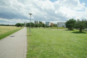 Aus Wikipedia: „Die Nordhaide wird überwiegend als Wohngebiet genutzt. Das Quartier entstand auf rund 30 Hektar Fläche. Bis 1990 wurde die Fläche als Truppenübungsplatz genutzt. Insgesamt sind seit 2003 über 2500 Wohnungen für 6500 Menschen entstanden, darunter 545 Plätze in der Studentenwohnanlage am Felsennelkenanger. Das Wohnungsangebot besteht aus einer Mischung von öffentlich geförderten und frei finanzierten Wohnungen. Die Nordhaide verfügt über ein Schulzentrum und mehrere Kindertagesstätten, eine Kinder- und Jugendfreizeitstätte sowie das Kirchenzentrum Dominikus.“