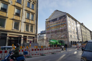 Baulücke Türkenstraße 52/54. Nur das Vordergebäude Nr. 52 steht noch, da es denkmalgeschützt ist. Seit 2007 haben die Eigentümer der beiden Häuser gewechselt und jeweils neue Bauanträge eingereicht. Die Genehmigungen kamen im Juni 2012, im September 2017 und im Juli 2019. Das Planungsreferat kann den Eigentümer nicht zum Bau zwingen. Es gab 2020 bekannt, dass sich der Bodenwert Türkenstraße 52/54 in den 13 Jahren seit 2007 durch Spekulation und Weiterverkäufe um 370 Prozent erhöht hat; der Leerstand ist inzwischen sehr hoch.13