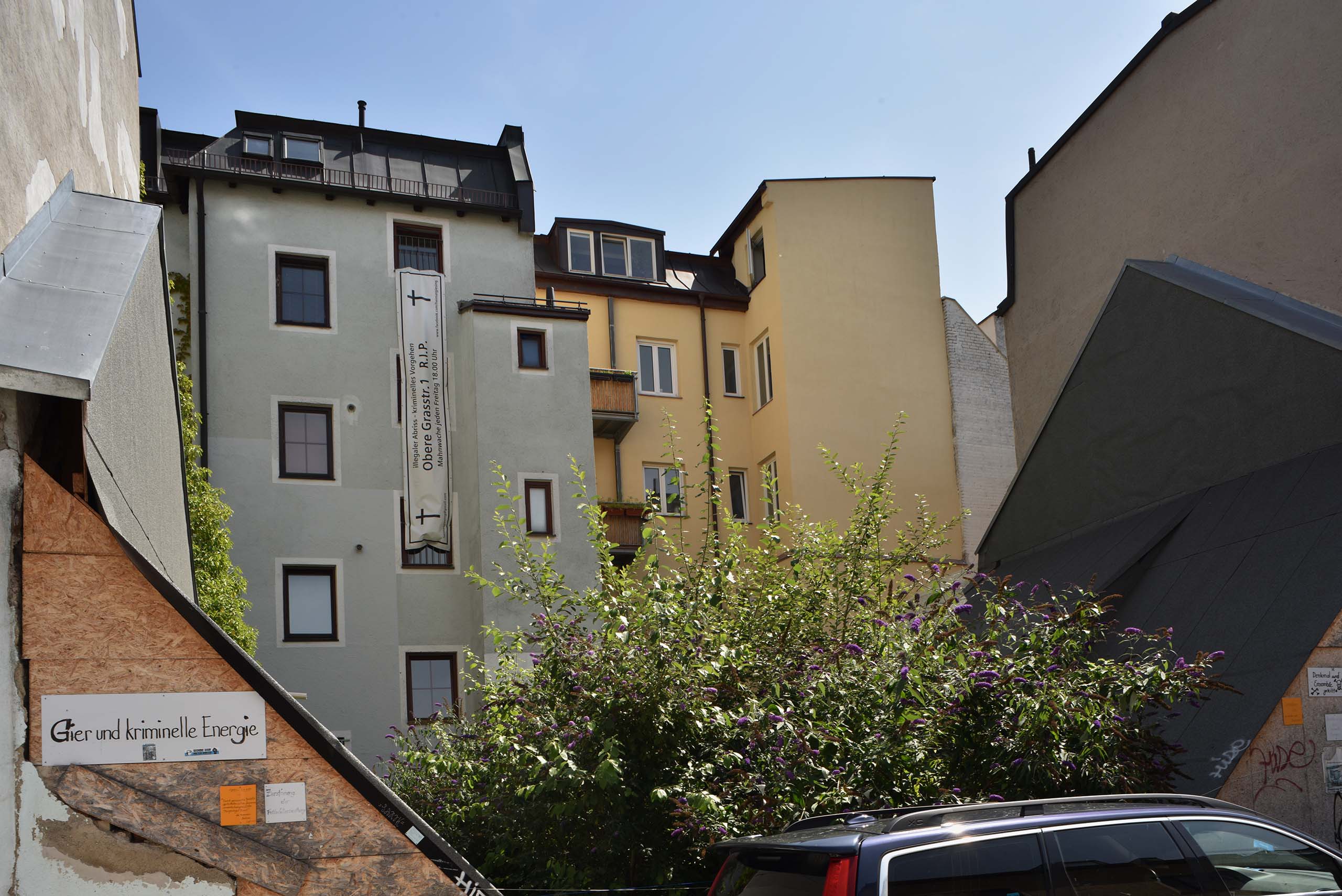 „Am 1. September 2017 wurde das Gebäude durch die Firma CSH Baubetreuung GmbH illegal abgerissen. Am Tag zuvor hatte der Abriss durch die von Anwohnern informierte Polizei noch verhindert werden können.“ (Wikipedia: Obere Grasstraße 1)